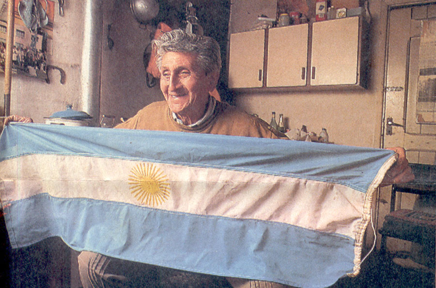 “Siempre dijo que no le gustaban los clubes andinos, pero aceptó que lo invitáramos a la Asamblea Ordinaria del Club Andino Junín de los Andes, de la cual yo era Presidente, porque los íbamos a nombrar socio Honorario, en 1993. Vino a la reunión y se lo vio contento por la designación. En ese momento tenía 77 años. Te mando con este mensaje algunas fotos. Lo fotografié en su casa, se puede ver que tenía una vivienda muy humilde. Se nota el frente de su casa. Tenía encima del marco de la puerta, su piqueta-mango de madera-donde acostumbraba a colocar la bandera argentina. También en otra toma se ve el interior de la misma, donde tiene algunas fotos de montaña, medallas y otras distinciones que lo tenían muy orgulloso. En dos fotos se ve solamente a Vidal, en otra está conmigo y en la restante aparece con la bandera en la cumbre de un cerrito que está en Tromen y constituye un excelente mirador del Lanín. Todas estas fotos son de 1994 y, como antes decía, tenía 78 años. También te mando, fotografiado, un texto que escribí en un anuario del C.A.J.A., que se publicó en 1986.