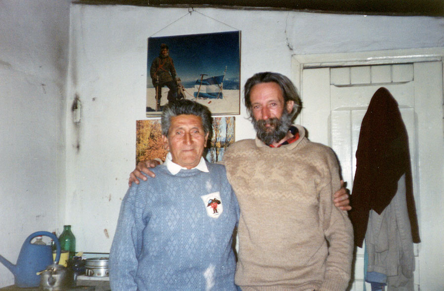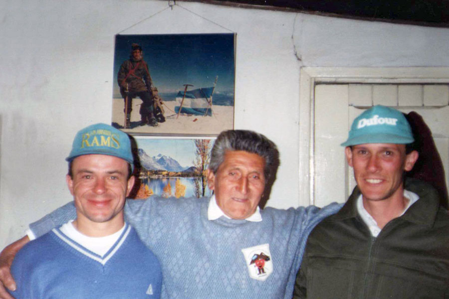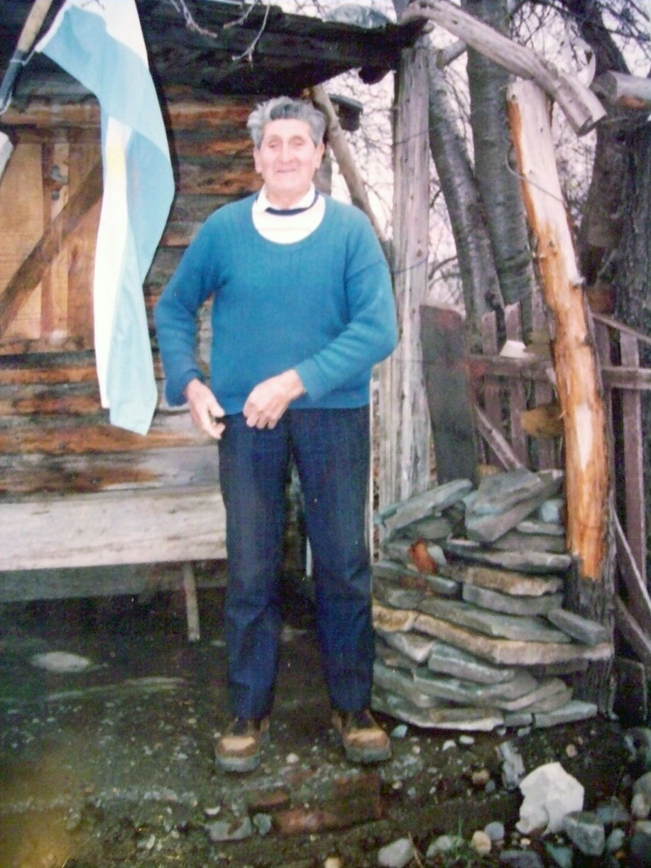 Voy a mis apuntes, las notas de las charlas que tuvimos. La primera vez fue en diciembre de 1976, en oportunidad del intento a la pared Sur del Lanín con Pablo Cavagnero, Oscar de Pietro y Fermin Olaechea. Su “ruca” entre álamos deshojados por el invierno tiende la mano caliente al que llega y la voz recibe con el nombre honroso de “montañés” acompañando un mate, tirando más tablas de pino al fuego, al andinista que se acerca a Junín de los Andes buscando un baqueano en la zona del volcán. Tiene el pelo negro y bien cortado, con algunas manchas grises y el rostro fuerte, flaco y quemado. Un hablar nervioso y lleno de vitalidad en sus movimientos, deseoso de mostrar sus pertenencias: los chiquilines que lo rodean y que entonan una canción de montaña.