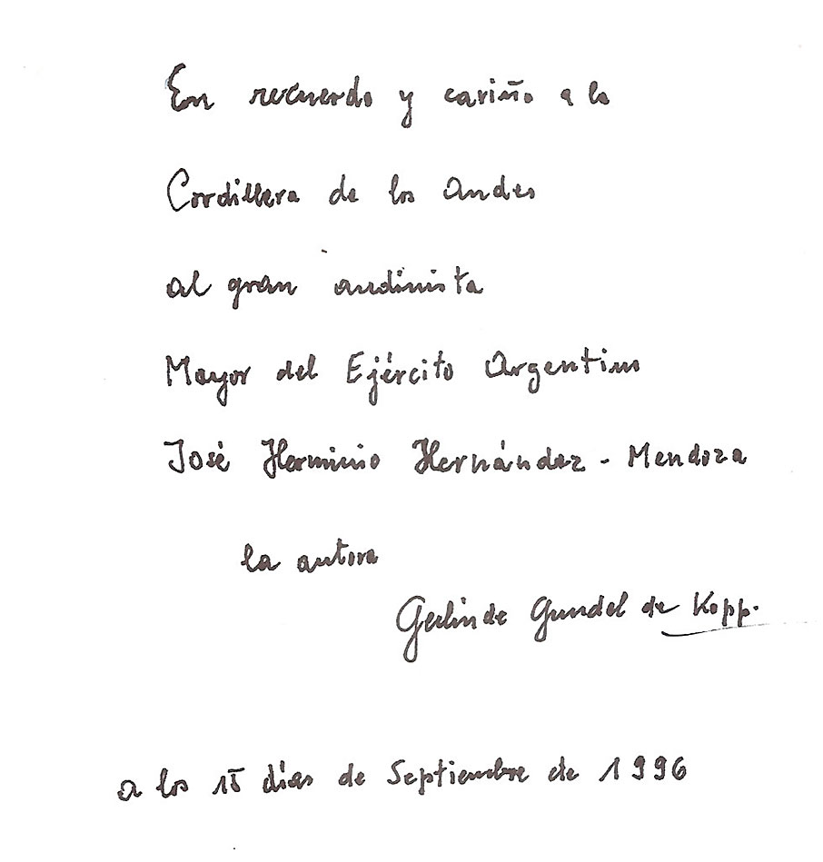 …Cruce la Cordillera de los Andes a pie, por tres lugares diferentes y en una oportunidad lo hice en avión. Al caminar desde la ciudad de Mendoza a Chile, hasta la capital de Santiago, vi por primera vez el Aconcagua, me impresionó mucho y me pareció desde el lugar que lo observé, el camino que llevaba hacia la frontera, una montaña inescalable.