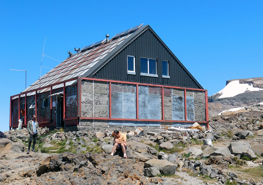 Parte del equipo que llevábamos con mi compañero, era una piqueta de travesía, un bastón de trekking y crampones. También llevábamos caso, linterna frontal, arneses y cuerda. Ese era el equipo que teníamos ambos. Luego, por su parte, Dante también llevaba mosquetones, tornillos para hielo, un par de cintas y todo lo necesario para rescate en grietas y asegurar el último paso que hay antes de la cumbre. Si bien el refugio Otto Meiling disponen de todo el equipo necesario para el ascenso al cerro Tronador, yo había decidido llevar mis botas, crampones y bastones de trekking. El resto era equipo del refugio, el cual estaba en excelentes condiciones. Principalmente quería usar mis botas para evitar ampollas y rozaduras. Pensaba que como ya las había usado varias veces, no me lastimaría. Lamentablemente no fue así. Cometí el error de no ajustarlas apropiadamente al momento de arrancar la marcha, esto hizo que mis talones se comenzaran a resentir. En una de las paradas que hicimos, me ajusté las botas correctamente, pero ya era demasiado tarde, sentía que las ampollas que tenía en los talones, ya se habían reventado. Dante me había pedido que le avisara si algo así ocurría, pero no le dije nada. Verdaderamente no fue correcto ocultarle esta situación, pero tenía miedo que esto condicionara de alguna forma la excursión.
