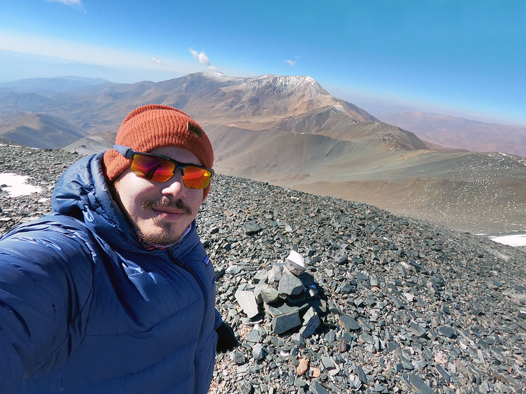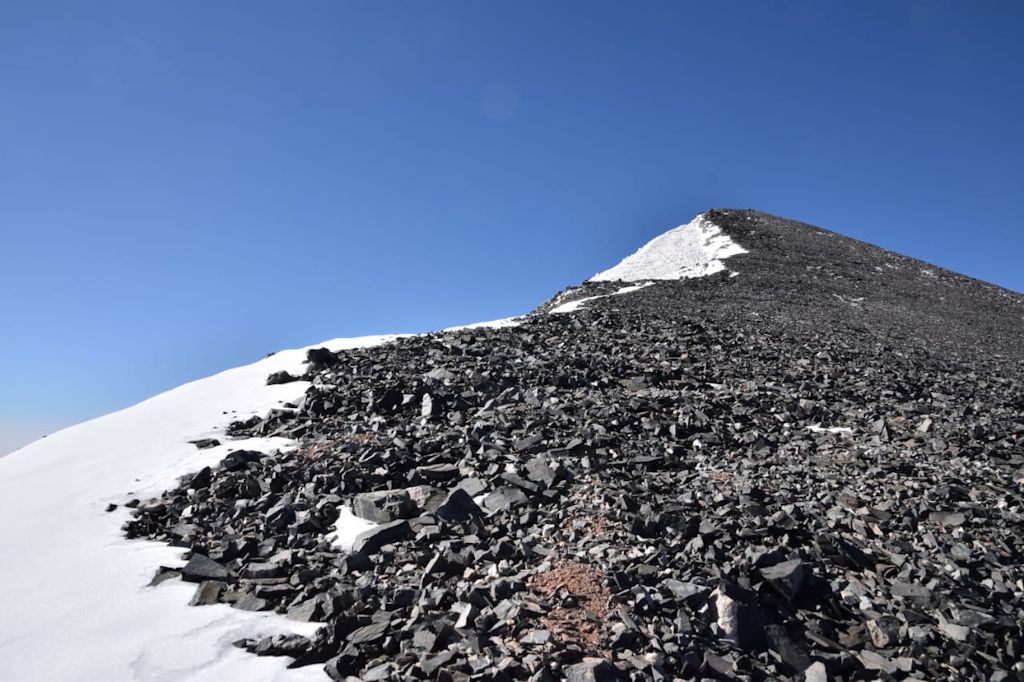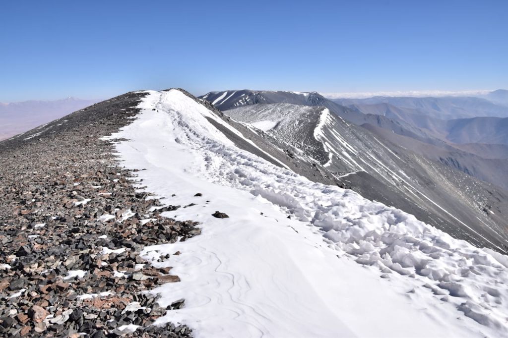 Mientras seguía a buen ritmo, y en la última parte del filo principal, Sebastián logra alcanzar la cumbre del Palermo a las 10:30 de la mañana y subir un desnivel de 1150 mts desde el campo 2 que habíamos hecho a 5000 mts.