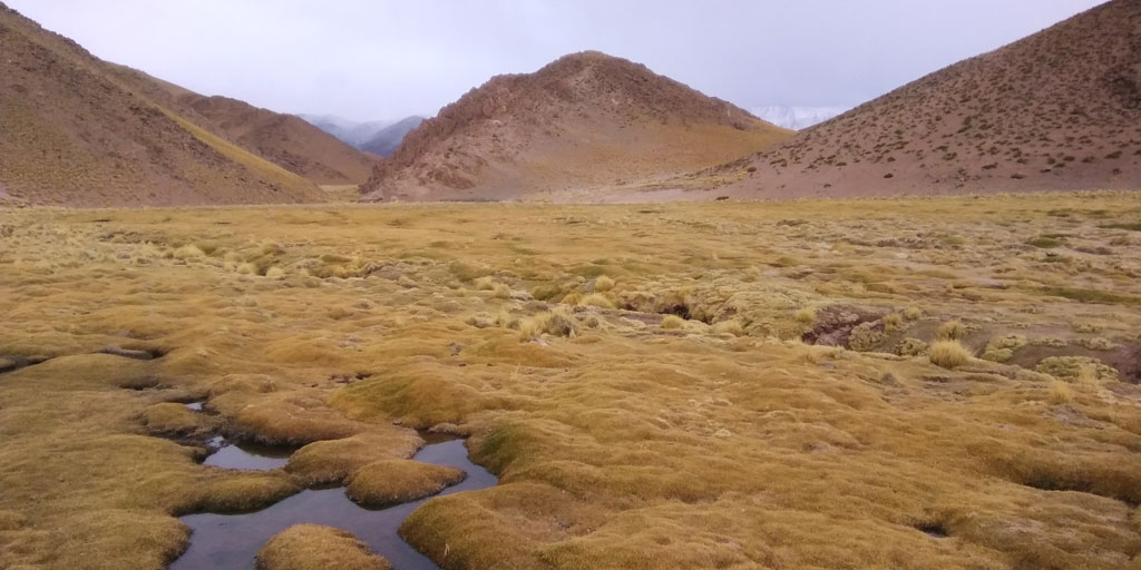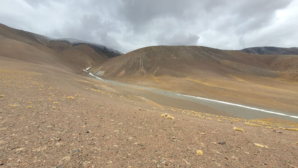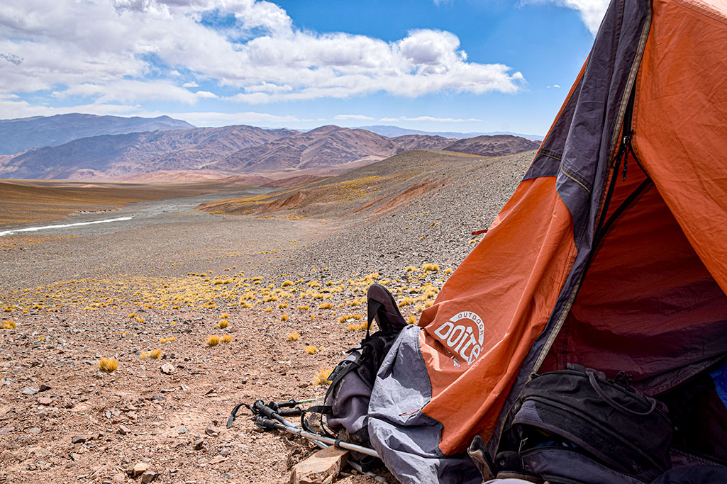 Una vez que llegamos a los 4400 mts, a nuestro campo 1, cenamos y descansamos. A la mañana siguiente (Miércoles 27 de Octubre) nos levantamos temprano (7:00 de la mañana), desayunamos y comenzamos a desarmar nuestro campamento. Preparamos todo y seguimos por la misma quebrada hasta alcanzar los 5000 mts, pasando por la gran vega en la parte superior de la quebrada (4500 mts).