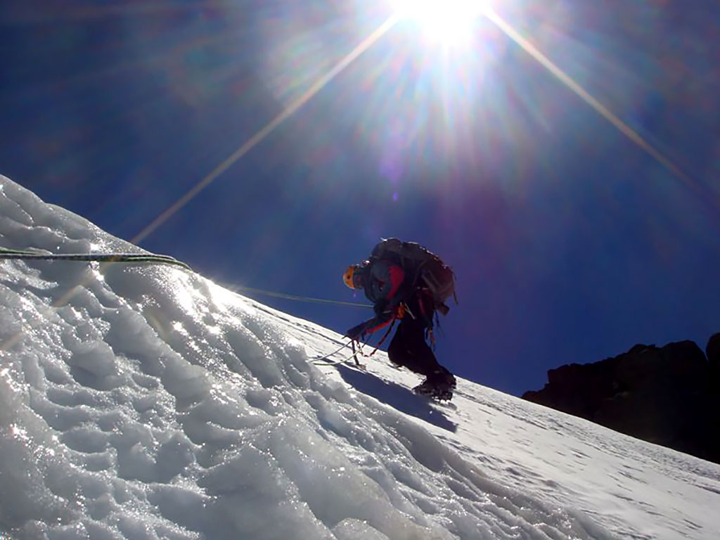 - Usar nudo prusik o similar (diam. no menor a 6mm) ó algún medio de respaldo del descensor y el mosquetón de seguro. Probar si el nudo frena realmente, a veces en condiciones de hielo ó humedad un nudo que unos rapeles más arriba frenaba bien, ya no lo hace.