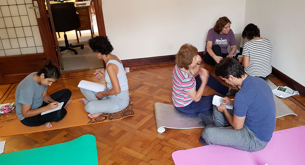 Sobre esta base trabajamos activamente en parejas y usando colchonetas, realizando técnicas de masaje corporal, induciendo al cuerpo a generar energía, además de realizar meditación, concientizar y reflexionar grupalmente.