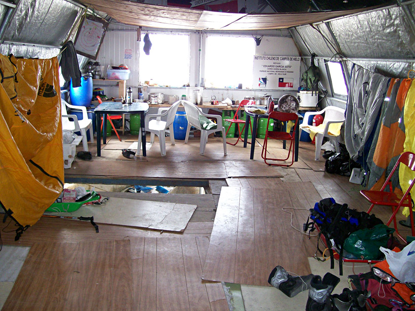 Interior del Refugio García Soto, Hielos Continentales. Expedición al Volcán Lautaro. Foto: Guillermo Martin