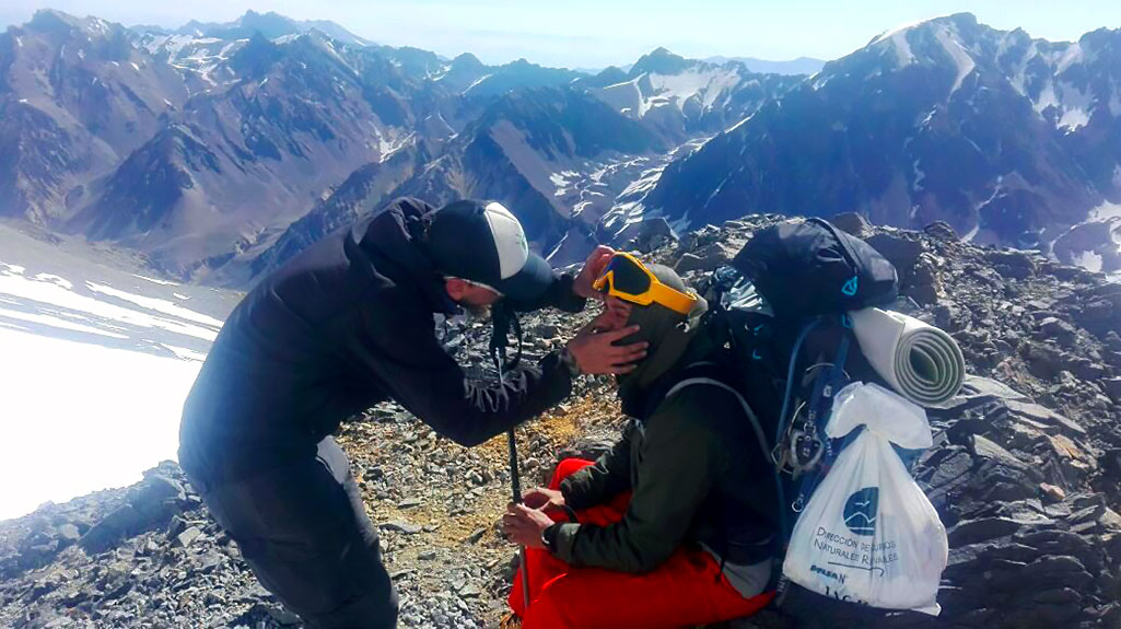 Considera que los aspectos más difíciles a los que se enfrenta “tienen que ver con los rescates, poder ayudar en un rescate, con toda la adrenalina que se vive en ese momento pero como montañero también es muy difícil decirle a otro montañista, que viene con muchas ilusiones, “hasta acá”, que por determinada causa fisiológica o determinado problema de salud, no puede seguir subiendo. La verdad que eso también me pone muy mal porque uno es médico pero también es montañero y siempre quiere poder disfrutar y estar contento en la montaña. Y muchas veces es difícil decirle a alguien que no, que no puede seguir por su seguridad o por su salud”.