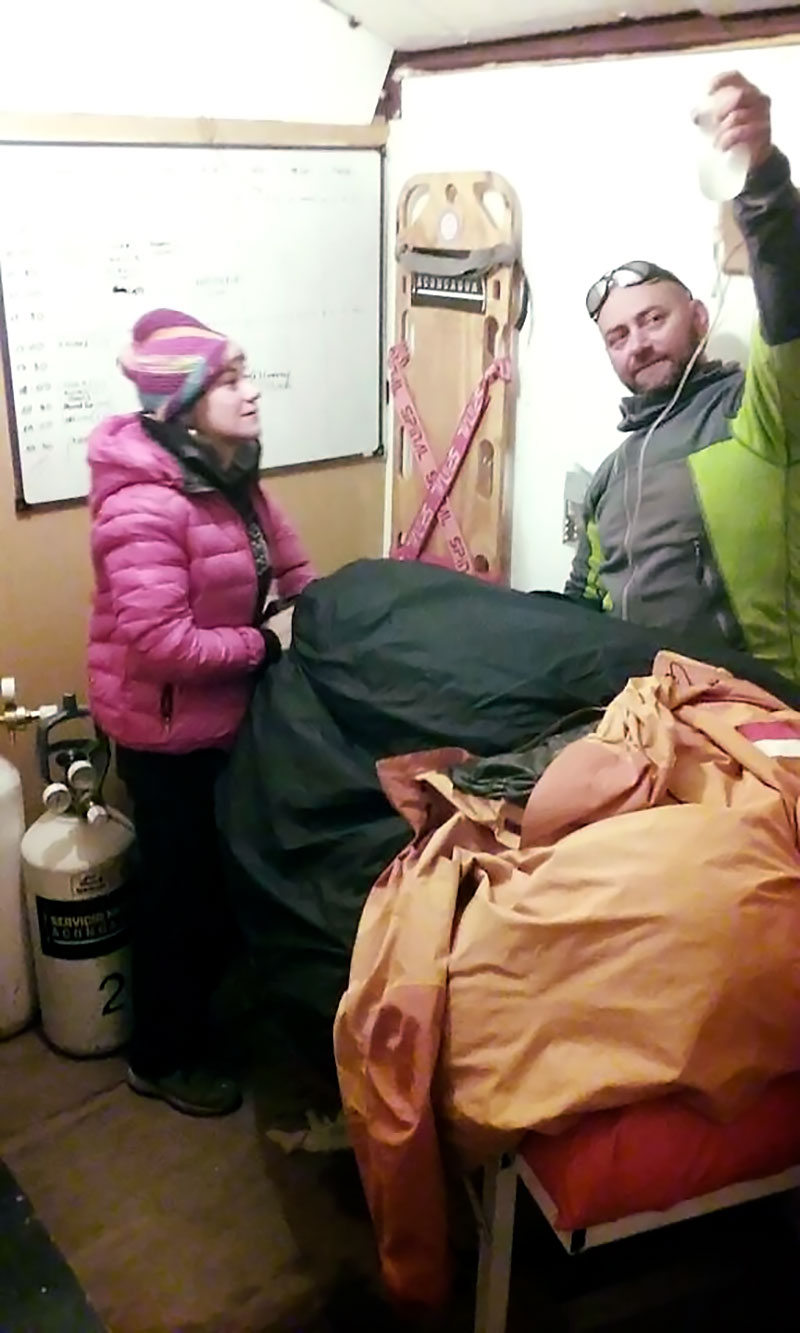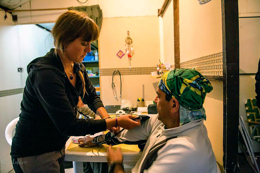Sí, el servicio médico es gratuito y se encuentra dentro del precio que el andinista paga como permiso. Pero lo cierto es que, al haberse formado una comunidad tan linda y solidaria, terminamos atendiendo a TODOS, ilimitadamente, sin medir recursos. Por ejemplo, si hay algún “campamentero” (personal de empresas privadas que prestan servicios de ascenso) que tiene algún problema y necesita algún medicamento especial, lo compramos y se lo hacemos llegar. No se le puede negar la atención a la gente allá arriba porque esa gente es solidaria, es esa misma gente que un día le sobra un pastel de papa y te invitan a cenar con ellos, o a veces tenemos temporal, no nos llegan alimentos y son las empresas las que se preocupan por nosotros para que no nos falte comida, tienda de dormir, alojamiento, todo. Es una cuestión de “nobleza obliga”.