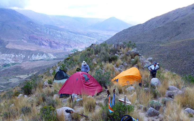 Habiendo establecido un modesto campamento, en una zona muy rocosa, se puso de manifiesto un tema central: intentar seguir a pesar de la desgastada salud de algunos y con condiciones climáticas adversas, o bajar.