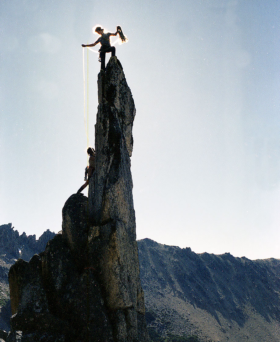 - Y... amigos de acá, los refugieros, los guías de montaña. Acá hay un ambiente muy bueno entre la gente de montaña. Es toda una cultura y los primeros modelos míos estaban acá. También había extranjeros que venían a la zona, gente que acampaba en el Frey, o el Catedral y te los encontrabas en la misma. Gente de muy buen nivel con las que de pronto compartías dos, tres semanas en la montaña.
