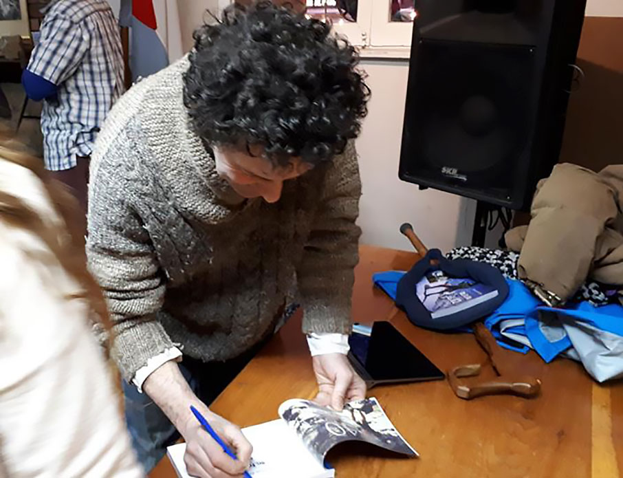 Cálida y muy concurrida (no había mas lugar) fue la presentación del libro de Seba de La Cruz en el CAB. Se cansó de firmar dedicatorias a muchísima gente que se acercó para escucharlo y reservarse un ejemplar. Se compartió mas tarde un grato momento con choripan y cerveza de Konna Microcerveceria.