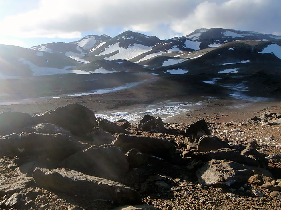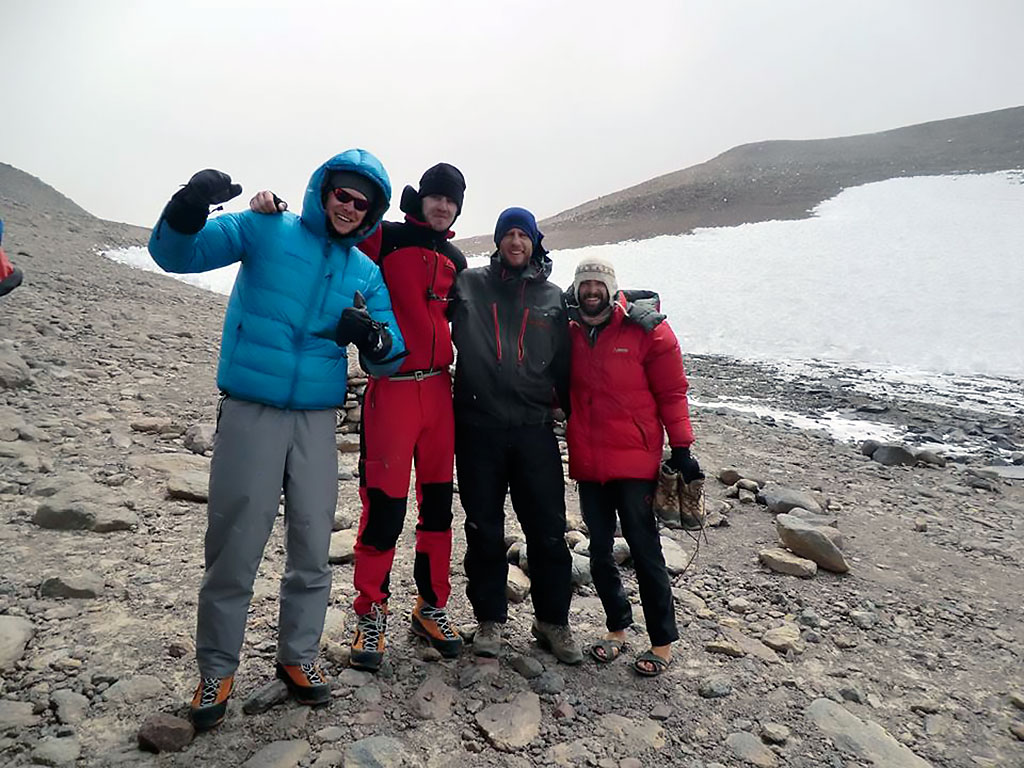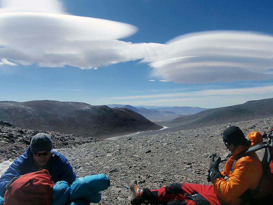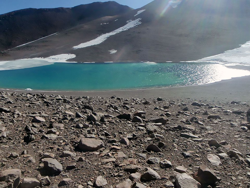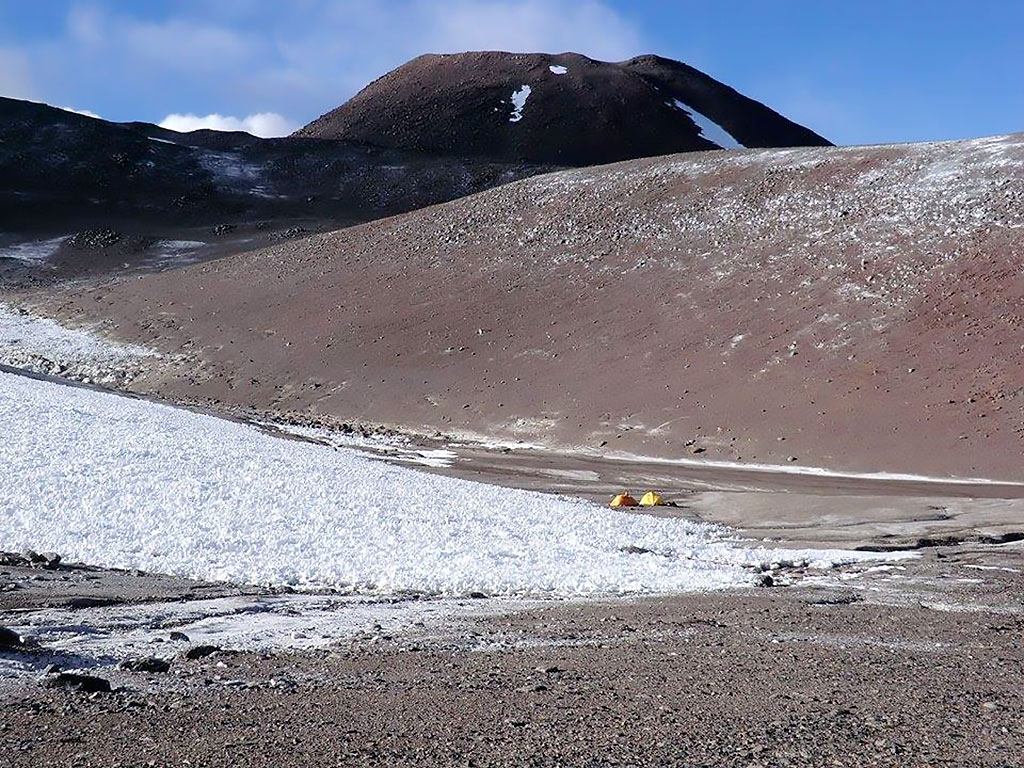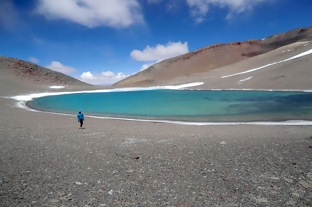 Después de recorrer el difícil camino en la camioneta ya estamos instalados en el CB a 5300 mts de altura cerca de la huella de 4x4 que lleva al CB del Ojos del Salado, un par de días más de aclimatación y salimos con el equipo de buceo para reconocer la ruta de ascenso y si se puede llegar al C1 para dejar parte del equipo, el lugar es desconocido para todos y hay un gran interrogante en la expedición, la Laguna existe esta temporada? que medidas tendrá? que profundidad? estará congelada? se podrá bucear? solo sabemos que está allí por las imágenes satelitales pero no hay fotos ni mayor información así que la incertidumbre es grande.