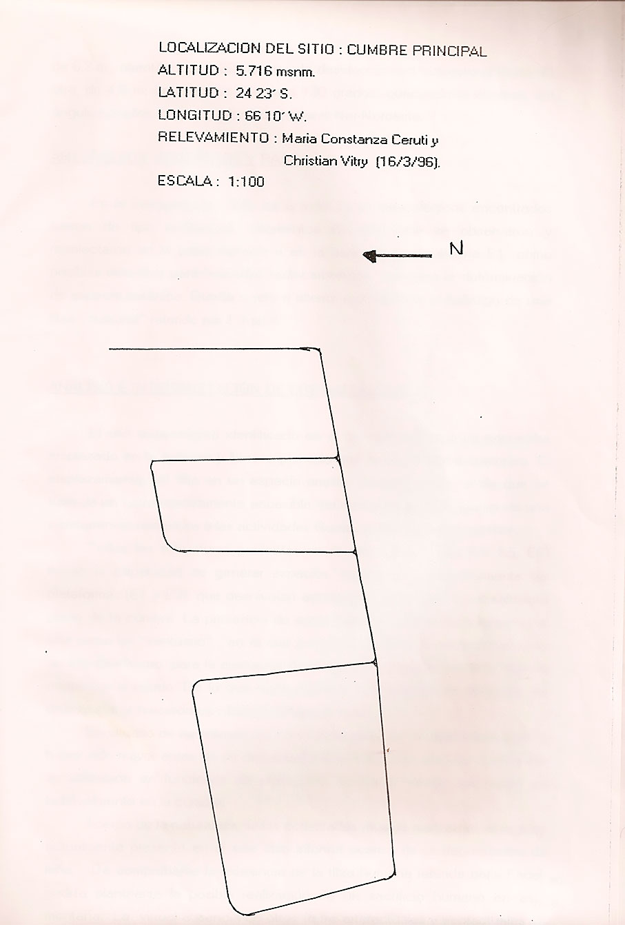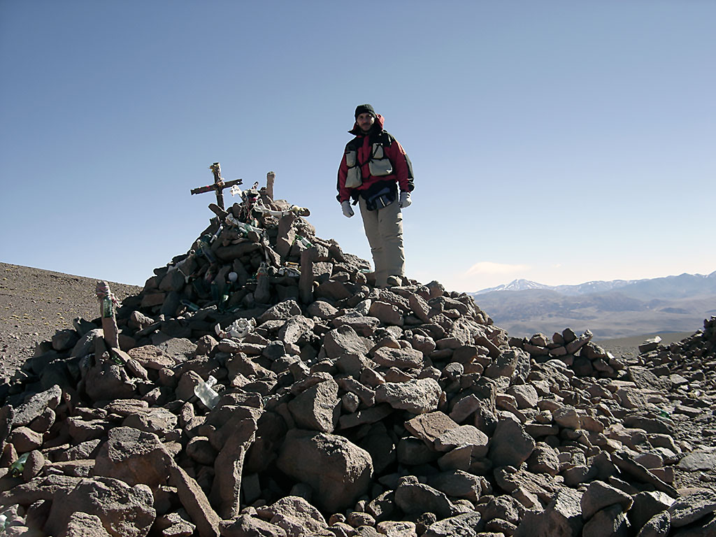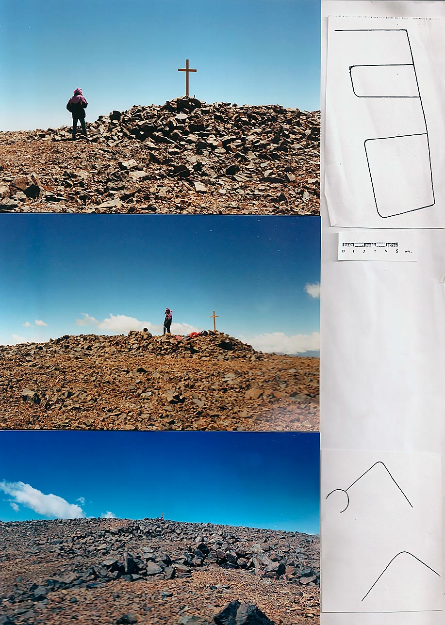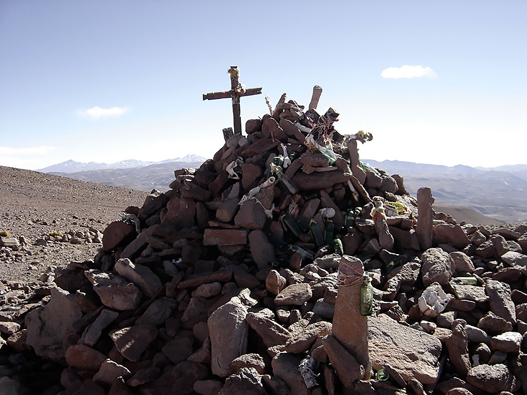 “Yo subí al alto por primera vez en el año 1930” con mi primo Reimundo Choque. Encontramos en la pirca una botella y dentro de ella una tarjeta que decía: “echamos 5 horas desde el camino del bajo a la punta del cerro, 14 de diciembre de 1914”. Tenía una firma que no se entendía. En el pircón habían quedado dos galones quebrados por rayos”.