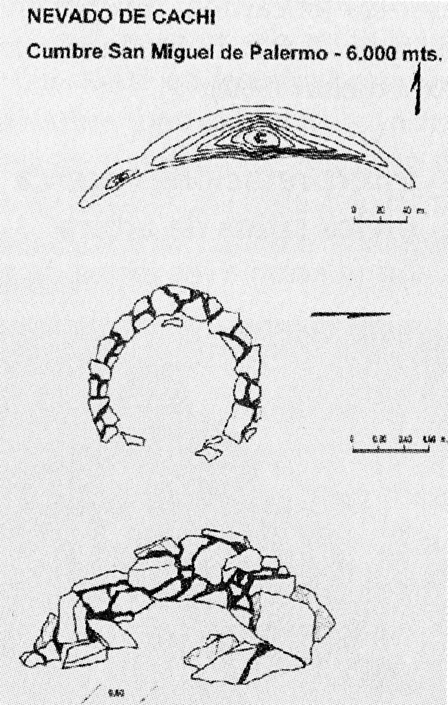 Estructuras semicirculares ubicadas en la cumbre de La Hoyada a 6.020 metros de altura