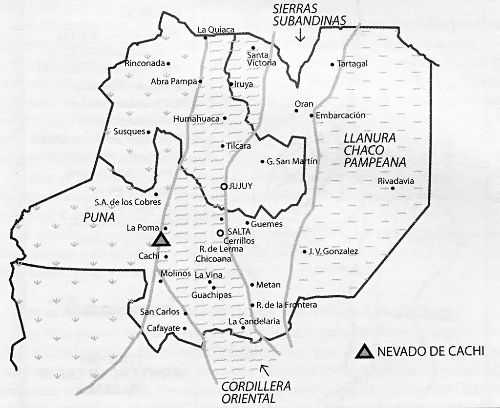 Regiones morfo estructurales del Noroeste Argentino, ubicación de la cordillera oriental y borde de la Puna donde se encuentra el nevado de Cachi