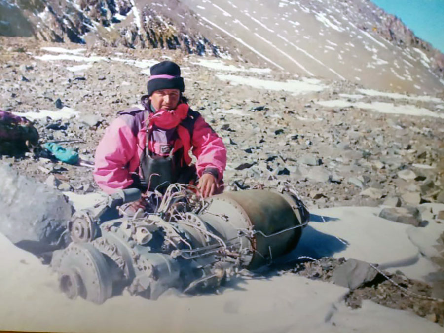 Salió a las cuatro de la mañana para hacer la cumbre. Habían cambiado las condiciones, salió el sol y cambió la nieve, entonces se tiró por una variante y cuando le faltaban unas dos horas para llegar a la cima, llegó a ver algo que le llamó la atención. Primero vio unas varillas de carpa, luego un pedazo de tela y su primer pensamiento fue: “Chau, se está volando todo acá. ¿Qué pasó?” Miró hacia arriba y vio dos cuerpos enteros. Al principio creía que estaba alucinando pero a medida que se acercaba lo que parecía una alucinación se transformó en realidad. Lo que vio le resultó impactante ya que no eran partes ni huesos sino “cuerpos enteros” que estaban refugiados en un lugar muy chico, en el filo de la montaña.
