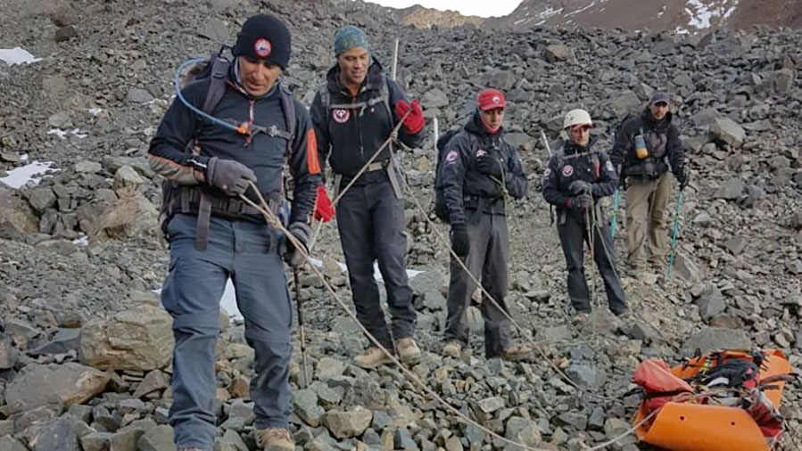 Después avisó a la Unidad Patrulla de Rescate y Auxilio de Montaña (Upram) de la Policía de Mendoza. Informó que los cuerpos pertenecían a dos hombres que se encontraban en buen estado de conservación –estaban prácticamente congelados–, en posición decúbito dorsal y vestidos con equipo técnico.