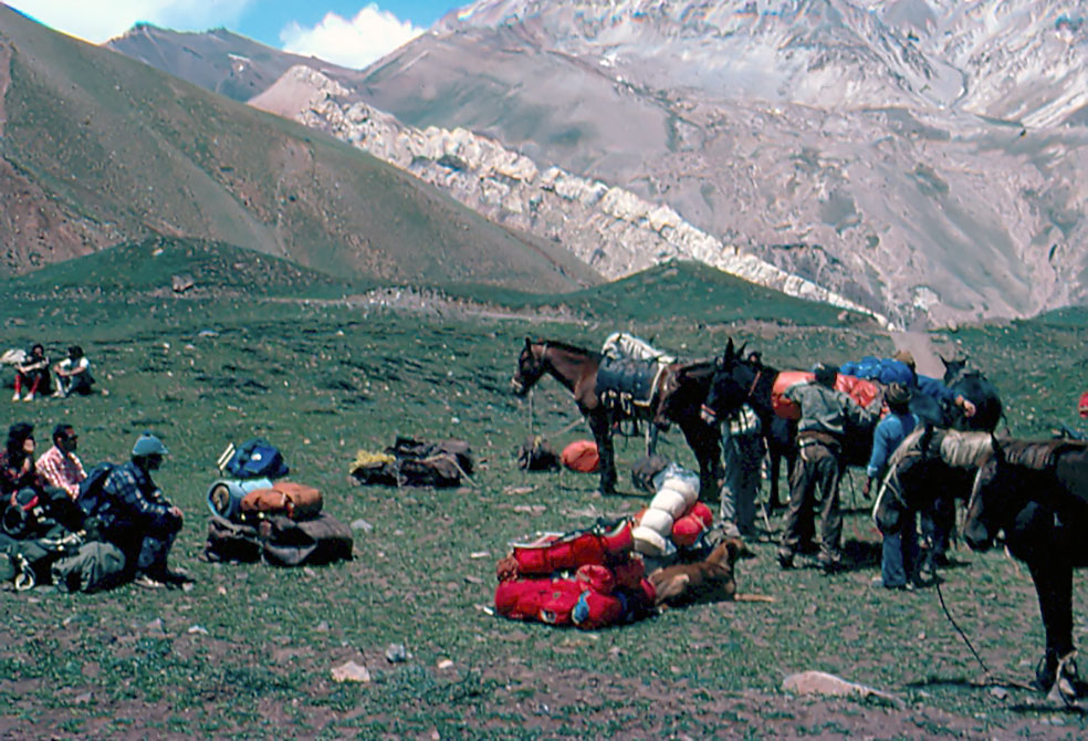 Diciembre 21 Salimos de Puente del Inca muy temprano rumbo a la llanura en donde cargaríamos a las mulas las que nos llevarían con todo el equipo al Refugio que se encuentra antes de Cuesta Brava.