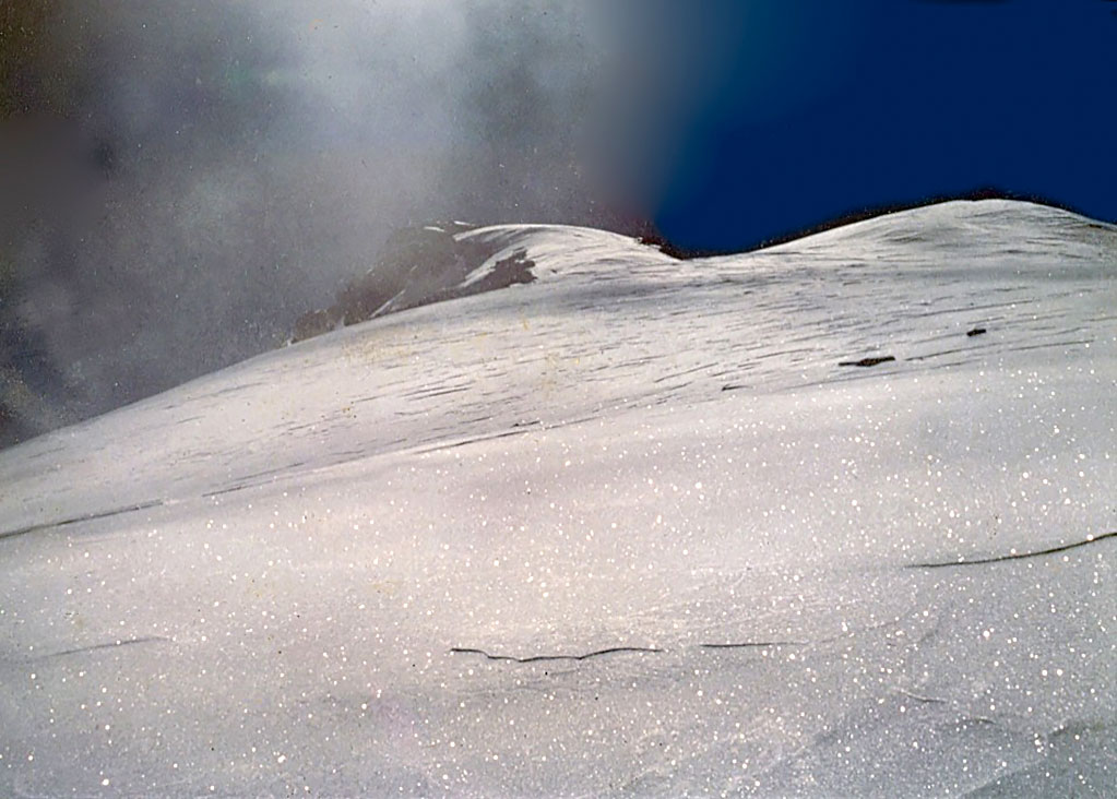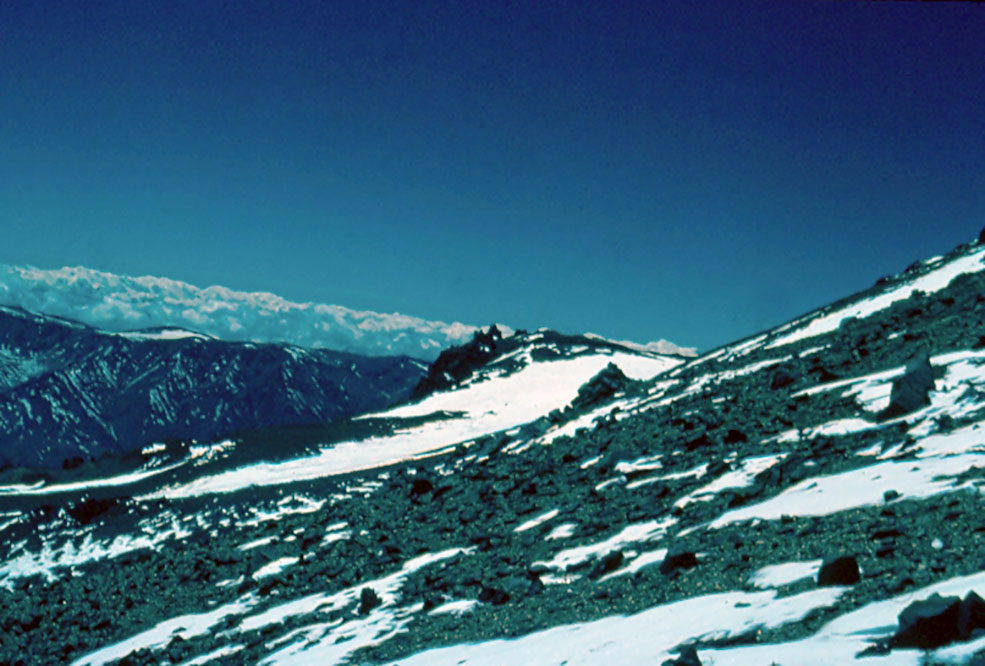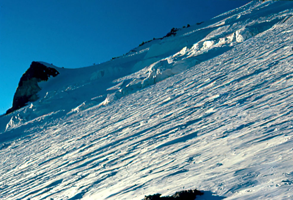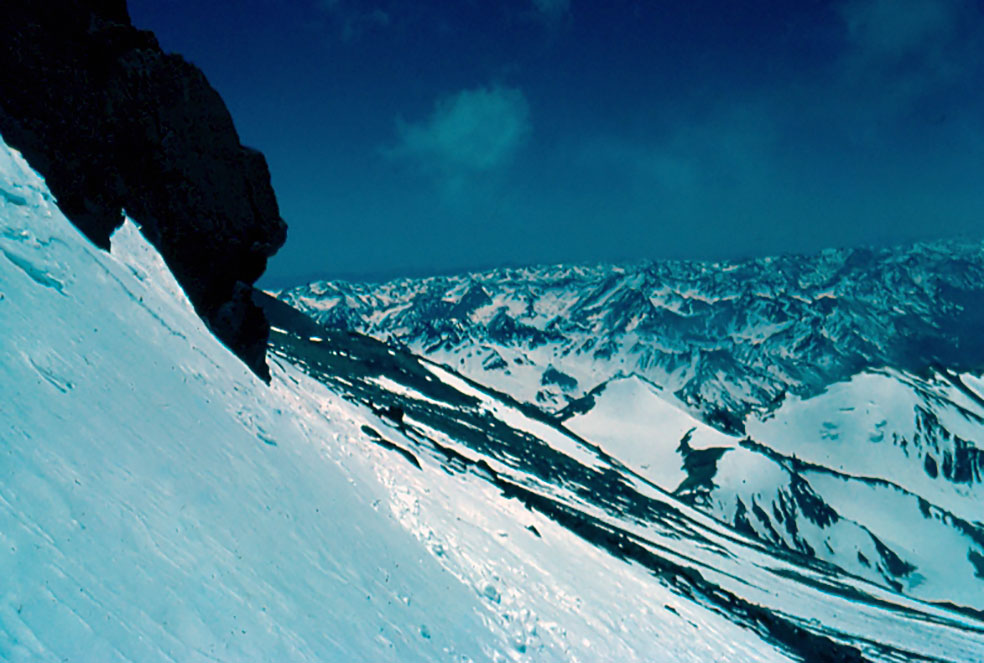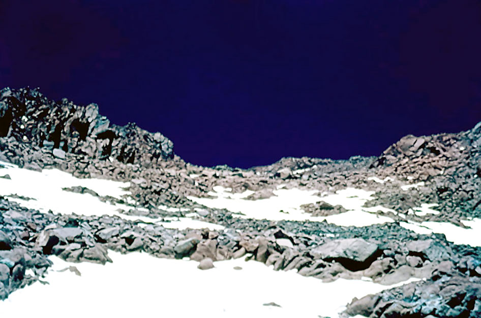 Me llevó fácilmente cuatro horas librar esa pared de hielo. De allí en adelante no había otra opción que seguir adelante, hasta alcanzar a ver parte de la última joroba de la montaña y por el lado derecho apenas se asomaba parte de la caída de la cumbre sur.
