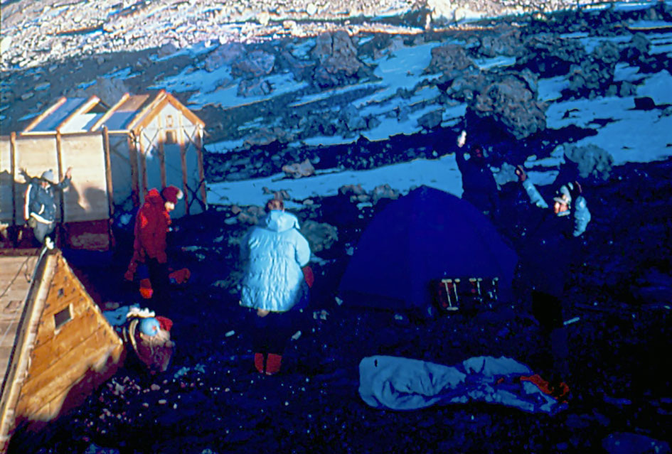 Continuamos hasta alcanzar los refugios de Libertad, Plantamura y Berlín, donde instalamos el campamento 1, en este lugar pasamos la noche todos en diferentes tiendas, en la mía, dormimos José Luis Mier, Fernando Ozorno y Yo. Y en las otras el Padre Zezati, Mario, Carlos y Federico. Y en la 3er tienda, Luis y Luisin (papá e hijo).