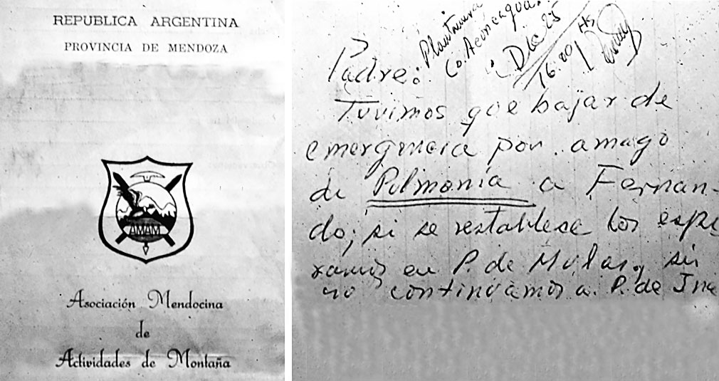 Llegué a Plaza de Mulas y desgraciadamente en ese momento no había nadie, me dormí un rato y me despertó el ruido de un helicóptero, era el que transportaba a Fernando y a otra persona a Puente del Inca y mas tarde a Mendoza. Este helicóptero había aterrizado en el refugio debajo de Cuesta Brava.