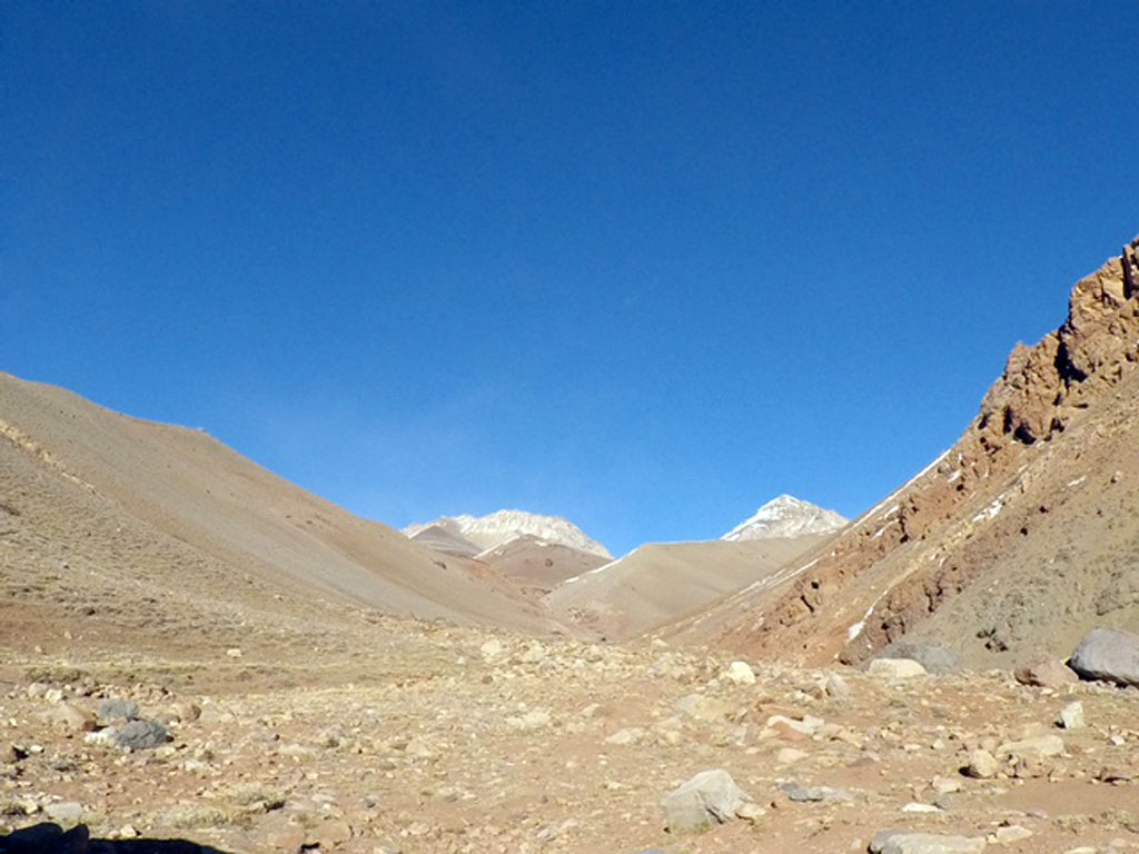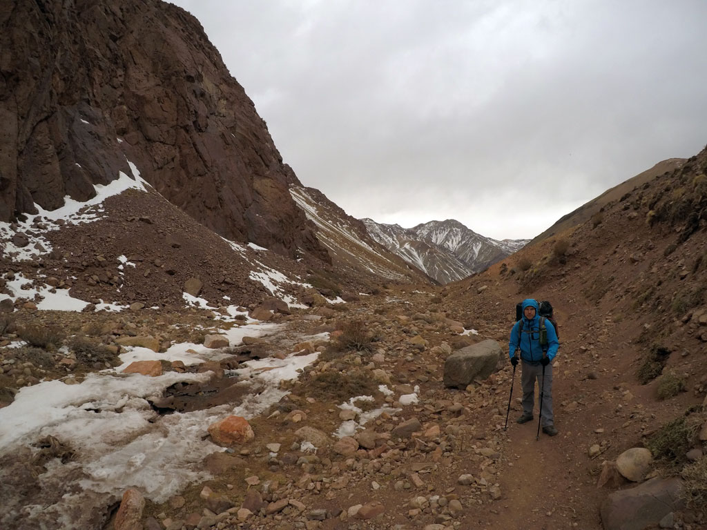Pero desconocíamos si en la Quebrada de Vargas nos encontraríamos con grupo alguno. Por ello, en caso de arribar al sitio del Refugio Grajales con mucha presencia humana, en donde debíamos establecer nuestro campamento base, teníamos la opción de acampar en la Quebrada de Laguna Seca: que, por otro lado, nos permitiría una mejor ubicación geográfica (no de exposición a los elementos) para las distancias a cubrir en las jornadas previstas. Sin embargo, al llegar al Refugio Grajales y no encontrar carpa alguna, decidimos hacer uso del área del Refugio para nuestra estadía. Durante el tiempo que allí estuvimos, sólo dos grupos de tres y dos montañistas se acercaron al área durante los primeros dos días para subir el Cerro Penitentes. El resto de nuestra permanencia en la Quebrada de Vargas no advirtió actividad montañista ajena a nosotros.