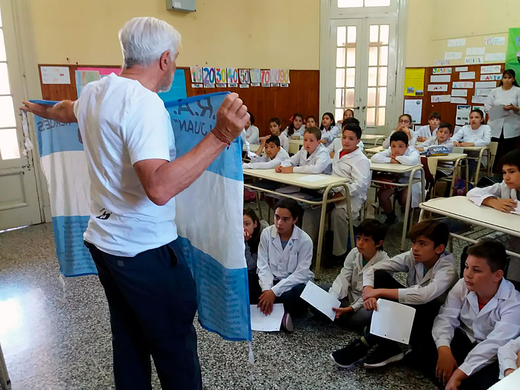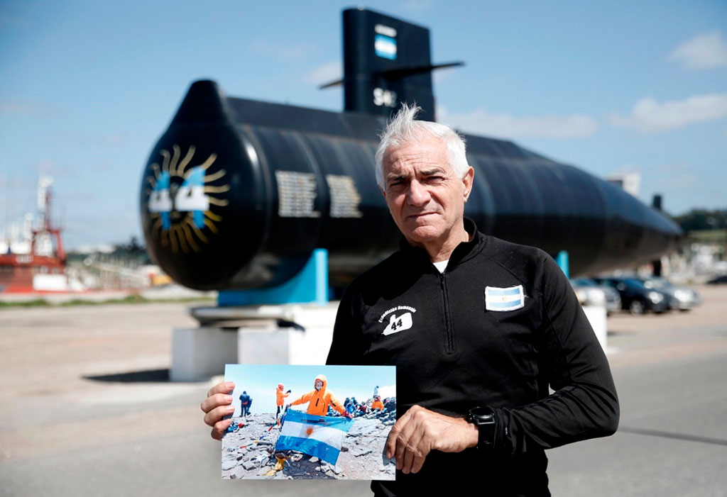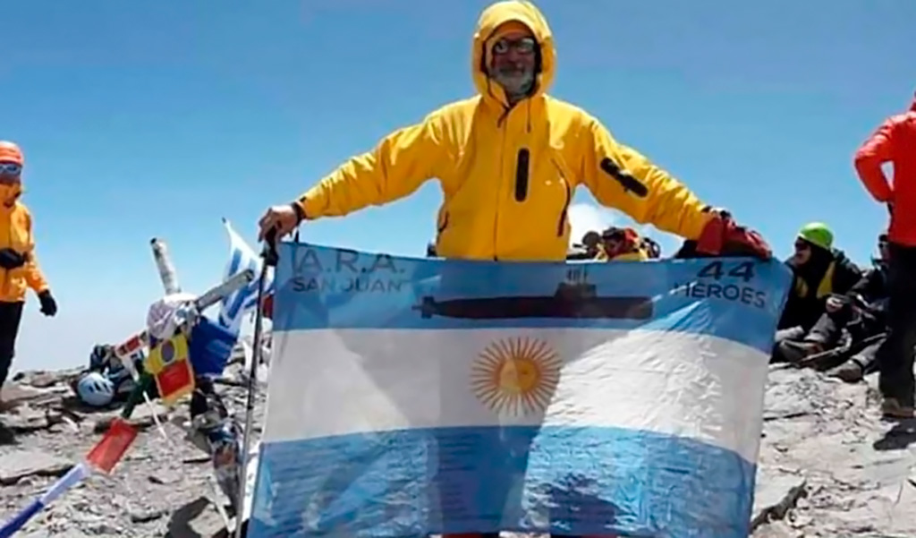 Esa bandera, agitada en la cumbre, planea donarla al Museo de la Fuerza de Submarinos, ubicado en la escollera norte de Mar del Plata, ciudad donde proyecta la construcción de un Memorial.