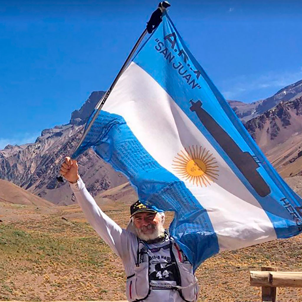 El Capitán de Navío (Retirado) Submarinista Guillermo Tibaldi, Ex Comandante del Submarino A.R.A. San Juan, en un acto de profundo respeto, camino y corrió, a lo largo de más de 1.600 kilómetros, atravesando cinco provincias con un noble propósito, realizar un homenaje a los 44 tripulantes fallecidos en el hundimiento del submarino. La misión que se propuso fue llevar una bandera argentina conteniendo los nombres de sus camaradas desde el muelle donde siempre amarro la nave en Mar del Plata, y desde el cual el submarino zarpara por última vez, hasta la mayor altura de nuestra patria, la cima del colosal Aconcagua.