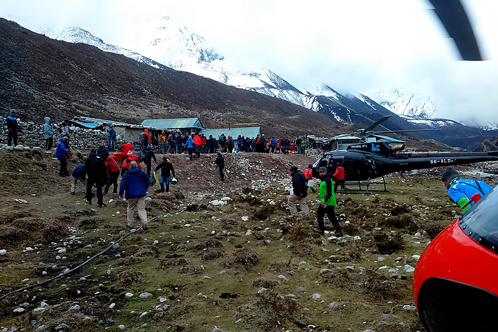 Los helicópteros ya han rescatado a decenas de alpinistas y a sus equipos que resultaron heridos en la avalancha del sábado. Cerca de 800 personas que estaban en distintos puntos de la montaña se vieron afectadas por el temblor y sus réplicas, indicaron las autoridades.