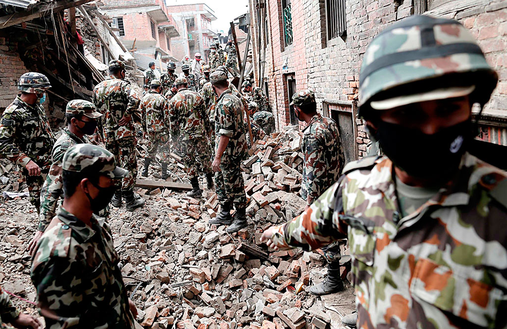 Miembros del Ejército indio ya están en las calles de la capital ayudando en las tareas de rescate y media docena de helicópteros de este país sobrevuelan la zona.