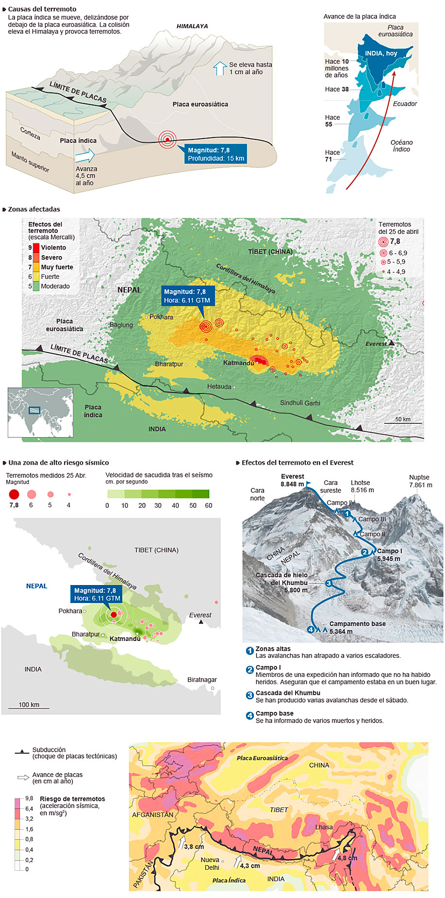 "Hoy hemos desplegado tres helicópteros para bajar a los alpinistas desde los campos 1 y 2. Están en seguridad pero tenemos que bajarles porque parte del camino está dañado", explicó Gautam y afirmó que la temporada de alpinismo en el Everest podría ser suspendida.