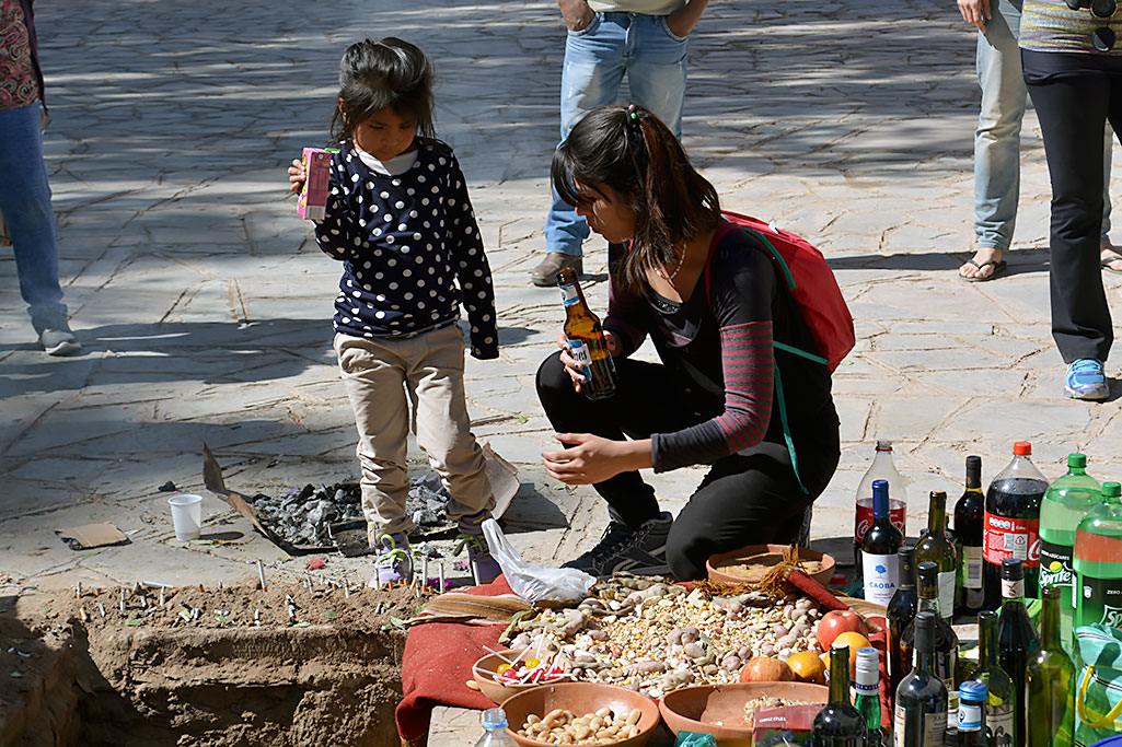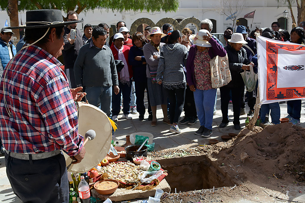 El pueblo hace su ofrenda a la madre tierra desde la mañana bien temprano, las comunidades originarias del Alto Valle Calchaquí realizan el ritual de la apertura. Para la ocasión se tiene preparado alcohol, cigarrillos, coca de coquiar, vinos y comida en abundancia. A medida que pasa la mañana va y viene la gente, toma un poco de vino y le convida a la Pacha y luego se arrodilla, suplica, agradece por las buenas cosechas y por la buena cría del ganado. También hay otra manera de agradecer y es con el canto de la copla, se dice, cantando, de las necesidades del pueblo. Asi transcurre el día en la plaza para cumplir de nuevo con la tierra, darle nuestro respeto para crear conciencia de que si cuidamos el medio ambiente respetemos la naturaleza, como la respetaron nuestros ancestros.