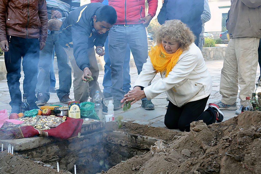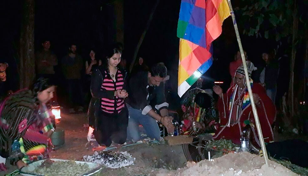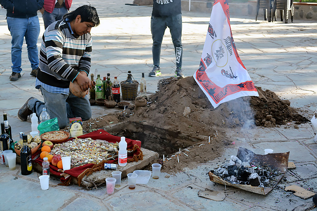 Es así como a los alimentos y bebidas ofrendados en el mojón, se une el fuego para invocar a la Naturaleza y pedirle protección y cuidado, así como la provisión del sustento diario.