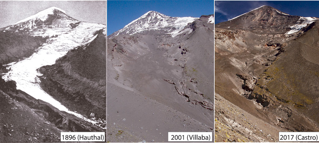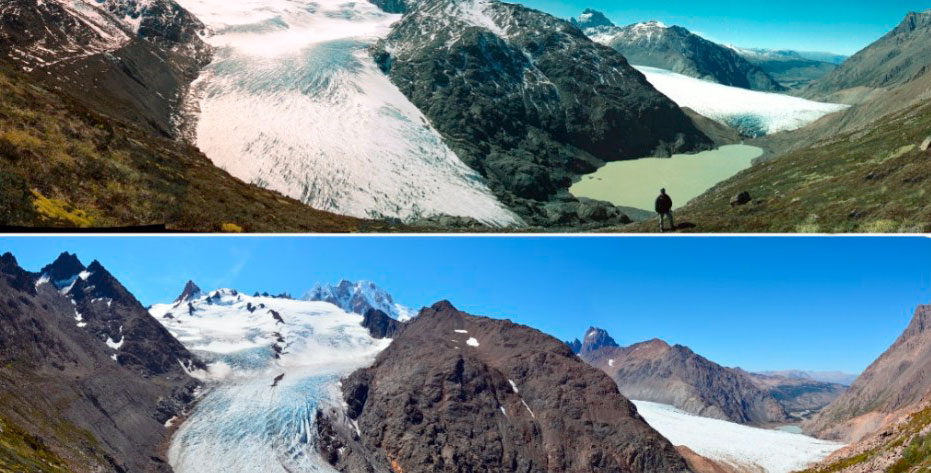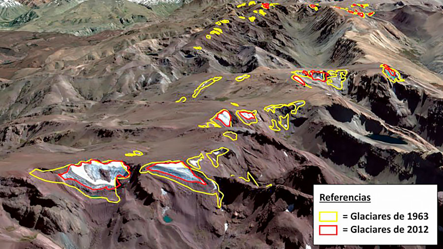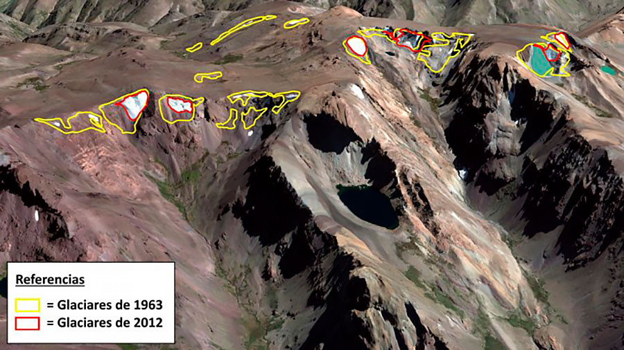 El retroceso de los glaciares ha sido uno de los cambios más notables en los Andes, especialmente en los tropicales durante los últimos 50 años, siendo mayor el retroceso de los glaciares más pequeños que de los más grandes. Observaciones de las temperaturas atmosféricas a lo largo de la Cordillera Americana desde Alaska hasta Tierra del Fuego indican que en los lugares de gran altitud las temperaturas han aumentado en tasas generalmente superiores a las encontradas cerca del nivel del mar.