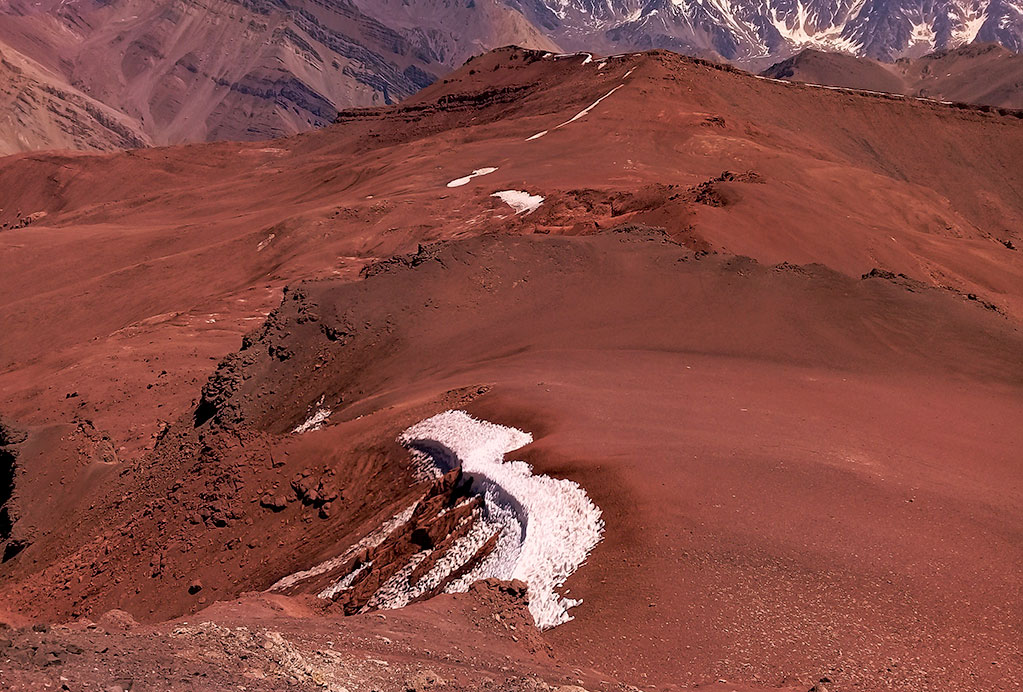Luego de la jornada de descanso (a puro mate “uruguayo” -amargo y cuasi hirviendo), comenzamos el día posterior con el inicio de una travesía de ascenso al cerro Penitentes -o Iglesia- (4356m) y a varios picos lindantes (4240m, 4247m, 4287m) en dirección al Este: la cual nos permitió reconocer el área del sitio arqueológico de cultura incaica, tras el descubrimiento de materiales del siglo XV por Arthur E. Lightbody en 1897.
