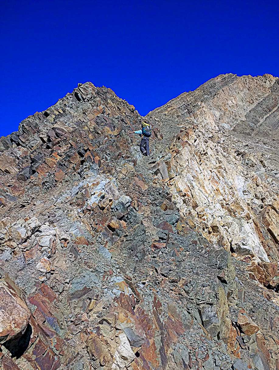 El tercer capítulo tiene menos horas de descanso, a la una de la mañana estábamos nuevamente en actividad ascendiendo con destino Sureste poco antes de alcanzar la primera cumbre; aquí las rocas estaban muy fragmentadas, nada se podía tocar porque todo se podía venir abajo en un segundo. Un tramo muy expuesto que requiere máxima concentración dado que para ambos lados las pendientes son muy abruptas, cualquier descuido tiene consecuencias graves, incluida la imposibilidad de comunicación con un tercero si la situación lo amerita.
