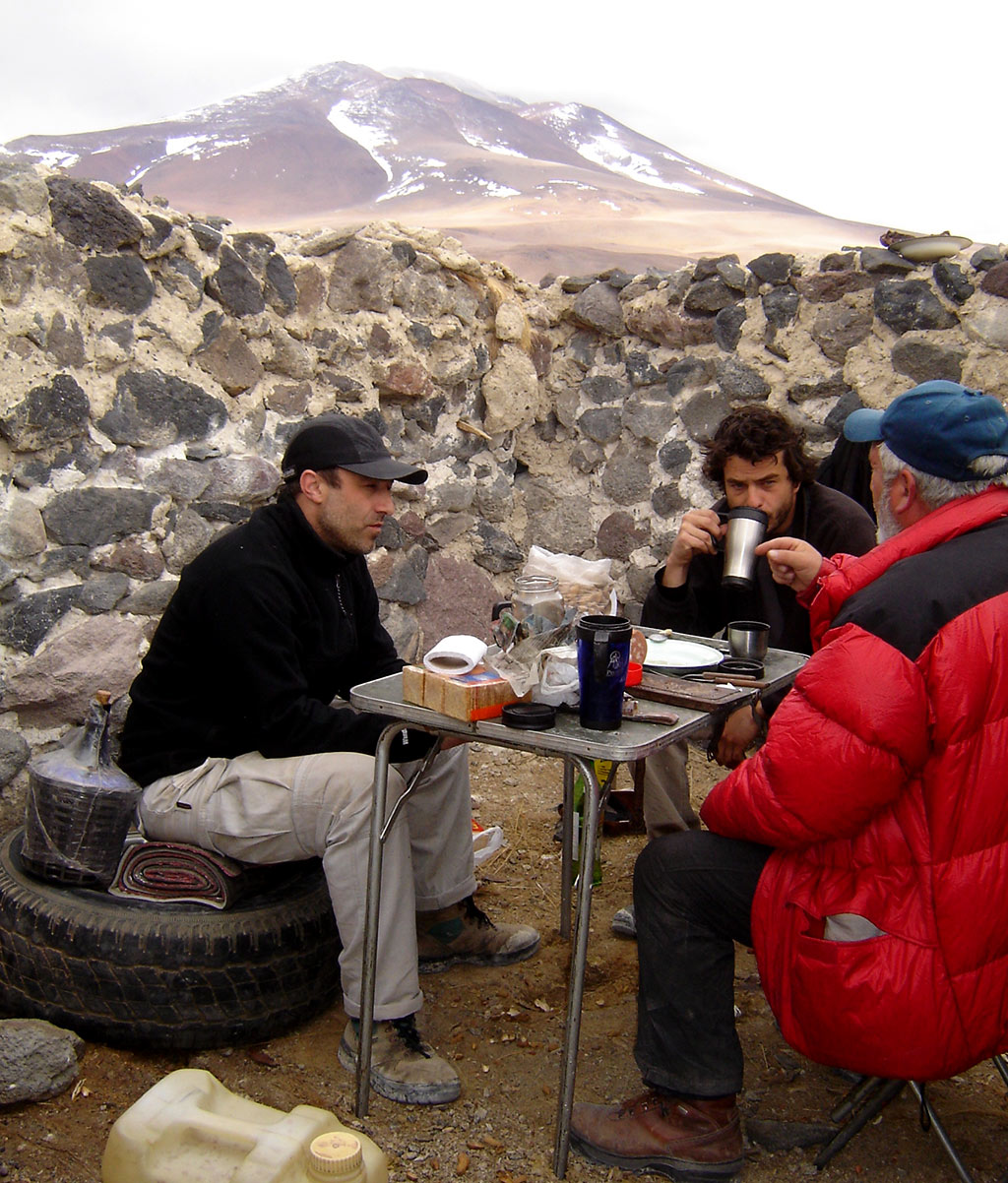 Al Socompa lo elijo porque allí conocimos la otra cara de la montaña. El día 23 de Diciembre del año 1965 siendo aún novatos en el conocimiento del arte del andinismo, partimos en tren hacia Socompa, el día 24 festejamos con los gendarmes la Navidad y el día 26 hicimos un campamento de altura cerca del filo que lleva a la canaleta que comunica con la cumbre. Horacio Araujo se acostó a descansar mientras su hermano Mariano y yo fuimos a explorar por donde subiríamos al día siguiente. José Alberto Pintado se quedó con Horacio, cuando regresamos, vimos a Pintado sólo fuera de la carpa, diciéndonos que Horacio no se despertó nunca y que roncaba medio raro y que se lo cortaba la respiración (apnea). No podíamos despertarlo, no tomo líquido ni comió en toda la noche. Se imaginan nuestra congoja.