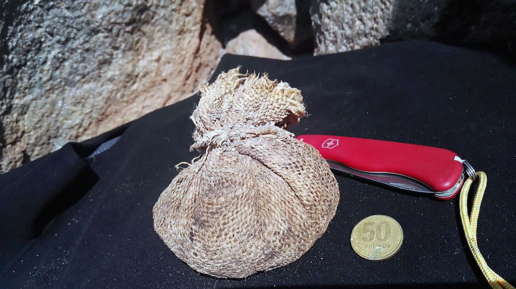 El guía de montaña se dedica a escalar desde hace 25 años y consideró que “lo más interesante” fue haber encontrado este objeto. “Es una bolsita muy antigua y tiene una ofrenda inca” valoró.