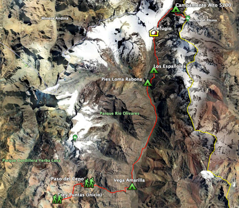 Lamentablemente, este Coloso se encuentra en un parque que actualmente tiene muy restringido su acceso, se podría decir “prohibido”. Por lo tanto, para entrar se debe usar caminos alternativos. Desde este tipo de caminos, estoy escribiendo la historia de cómo fue la ruta a uno de los gigantes olvidados de los Andes Centrales, el desconocido Nevado del Plomo (confundido con el Cerro Plomo, ubicado en la República de Chile), que se alza por sobre los 6 km. y se encuentra protegido por ríos y glaciares que lo hacen bastante inexpugnable para quien quiera ascenderlo. Por todo ello, es un verdadero desafío que pone a prueba el poder de la mente y del cuerpo.