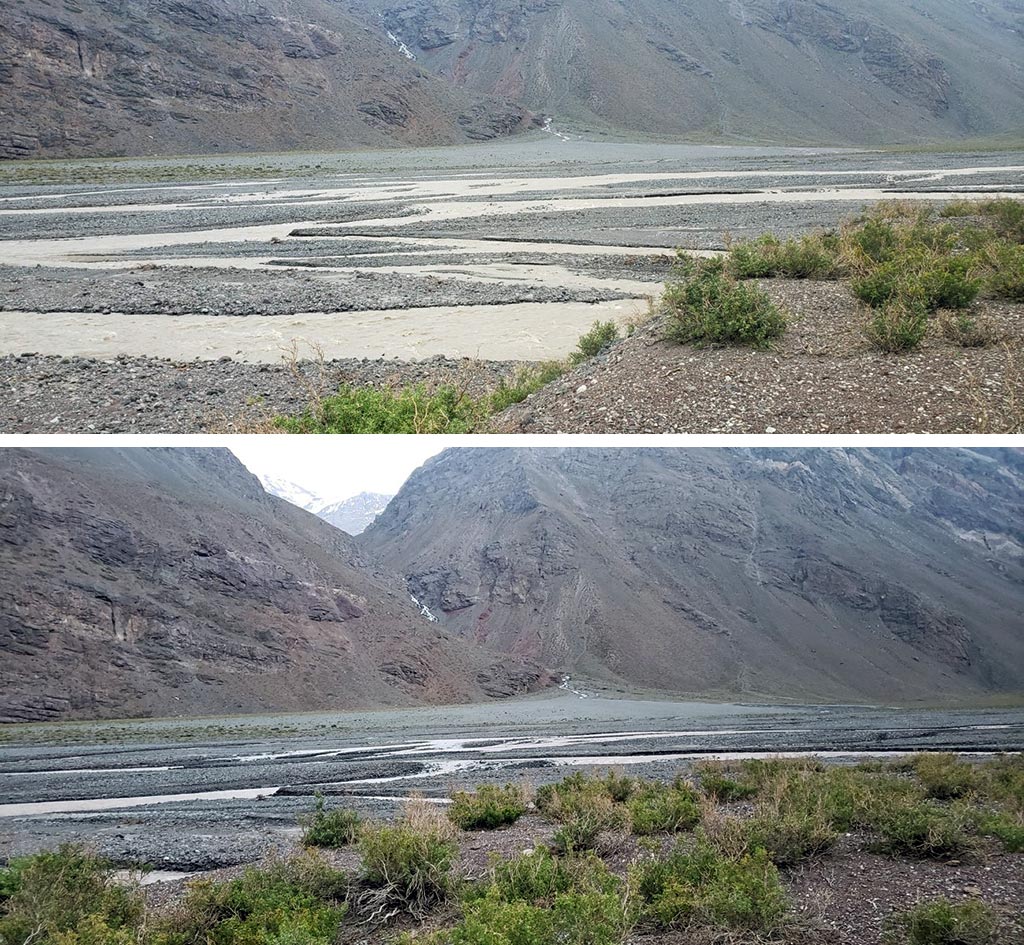 Una vez alcanzado el lugar donde instalaría mi campamento, me encontré con la desagradable sorpresa que ya no existían las lagunas. El río, en una de sus subidas por los deshielos, se llevó las lagunas y hoy en día solo es un brazo más del río cuyo caudal es bastante turbio y lleno de sedimento. Por las condiciones del agua, mi purificador de agua fue de vital importancia. El filtro se saturaba después de un poco más de un litro de agua y debía limpiarlo para seguir purificando, pero cumplió su objetivo.