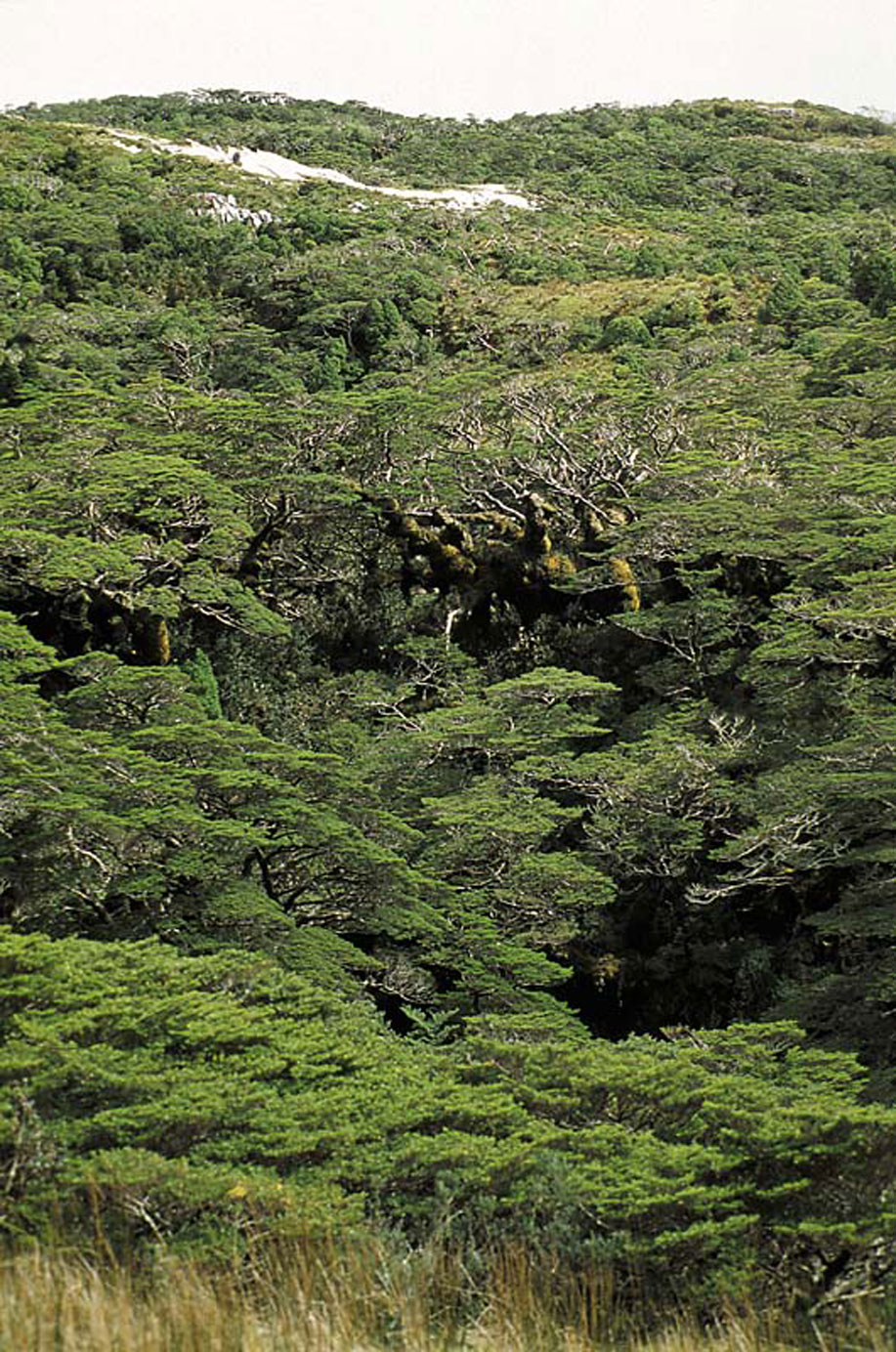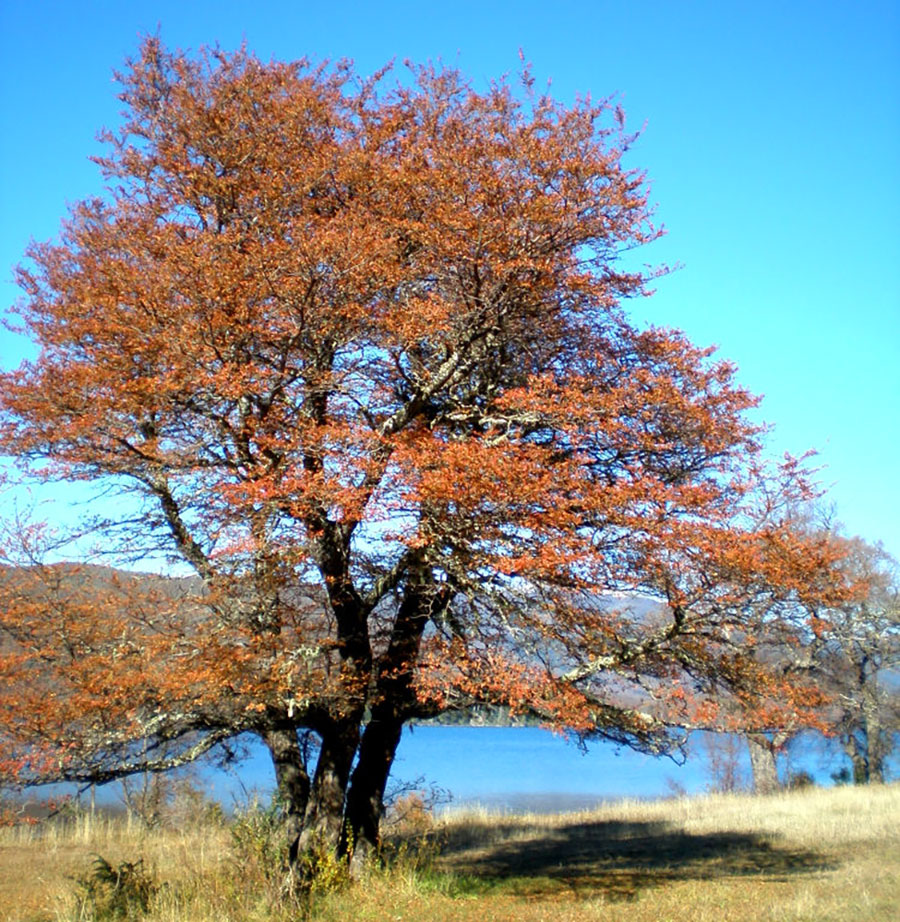 Sucedió que en el descenso, la larga barba del viento se aferró a un magnífico árbol. Era el Ñire, un árbol de raíces muy fuertes, bien afirmadas entre las rocas de la ladera de la montaña. Entonces, a pesar de que el Trauco iba ganando la batalla, llegó la salvación para el viento, quien así habló al Ñire, agradecido: