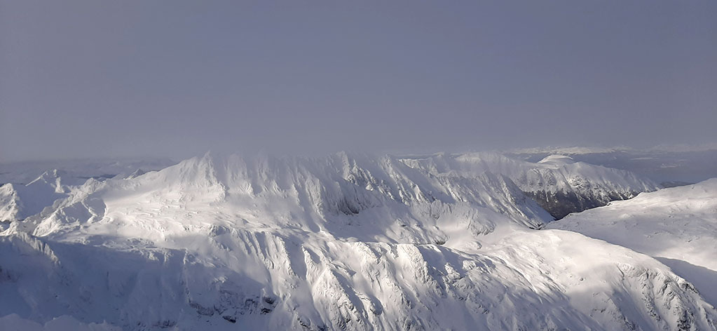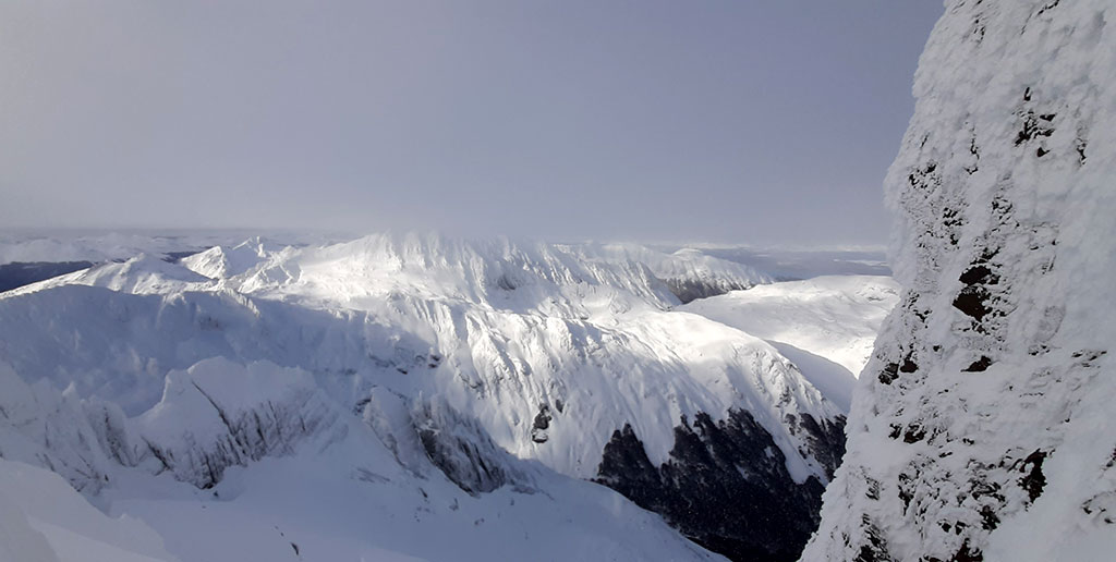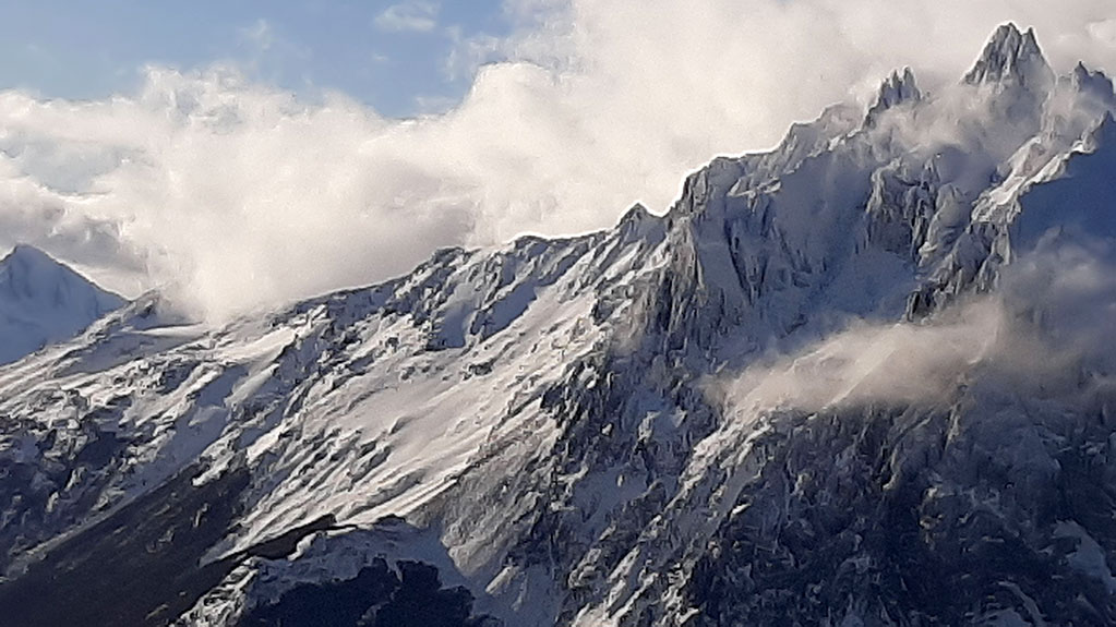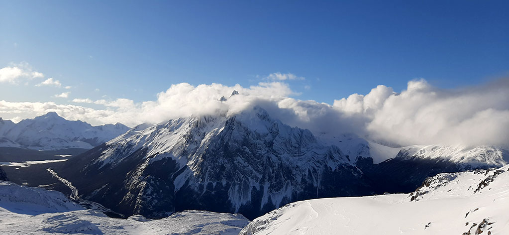 Luego cuando volví en Marzo a Ushuaia, tuvimos que hacer la cuarentena de la pandemia Covid 19 y vivimos momentos en que solo podíamos mirar desde las ventanas, y con el zoom de las cámaras fotográficas, como el Monte Olivia se iba tiñendo de blanco. Con los compañeros de cordada de Ushuaia compartíamos audios de particularidades de las diferentes rutas que se presentan en esta montaña emblema de la Provincia de Tierra del Fuego, Malvinas e Islas del Atlántico Sur. Sumergidos en esa incertidumbre que nos atravesó durante la cuarentena, donde la muerte rondaba tan cerca y la soledad del sur se hacía sentir, el calor de los mates y las charlas virtuales con las cordadas fueron las herramientas para mantener latente ese anhelo de escalar esta montaña nuevamente.