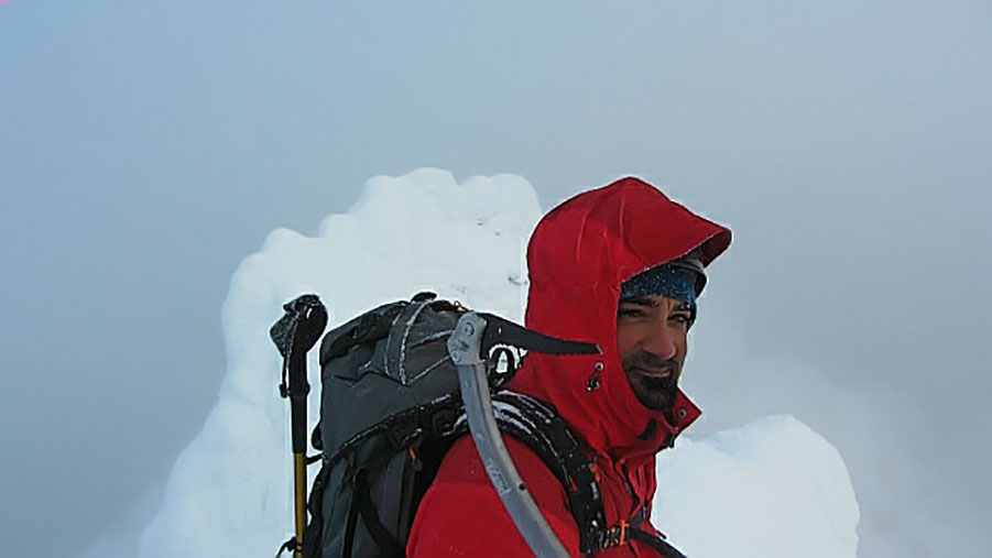 “Los últimos metros a la cumbre fueron tortuosos, venia insultando a diestra y siniestra. Un paso y me hundía! Nieve a la cintura, las manos firmes a los piolets enterrados de lleno en la nieve. El viento se levanta y me congela los lentes, no puedo ver por dónde voy, me los quito protestando a mí mismo, continúo subiendo, entre mis insultos y el viento escucho las arengas de Pablo ya en la cumbre muy expuesto a los elementos. Tengo que subir a como dé lugar. La cumbre está ahí nomás”