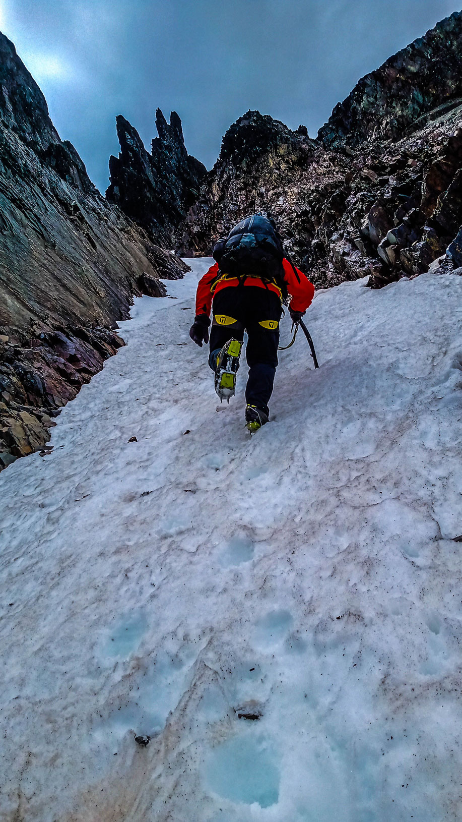 Desde la zona del Conejito hacia la cumbre es una zona donde, mientras se escala se transita por precipicios, con vistas al glaciar DAgostini.El transito fue ameno, muy seguro, con nuestras mentes listas y concentradas para avanzar los metros finales hacia la cumbre.