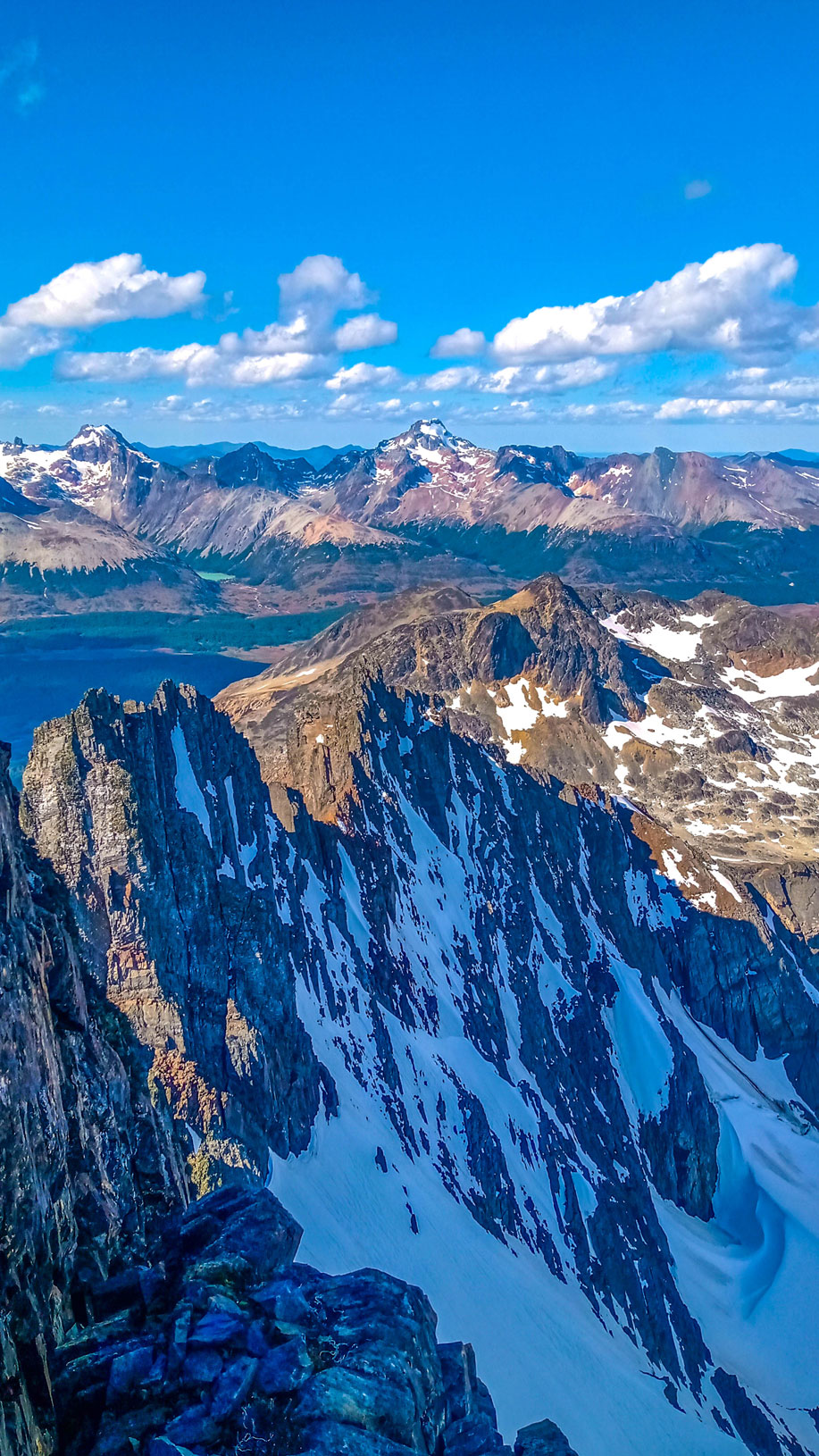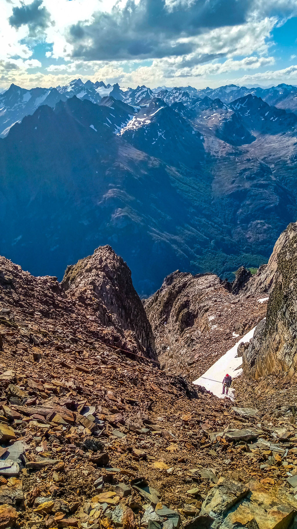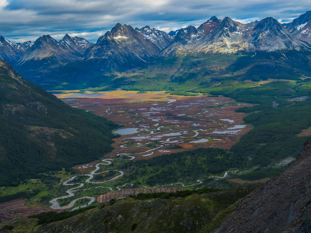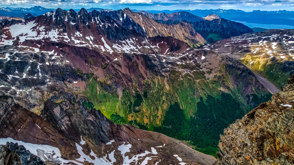 Una vez alcanzado esa zona, llegamos a un balcón, en donde ya se divisaba el otro lado de la montaña y, desde donde podían verse las otras montañas, entre ellas el cerro 5 Hermanos, también él Le Cloche, etc.