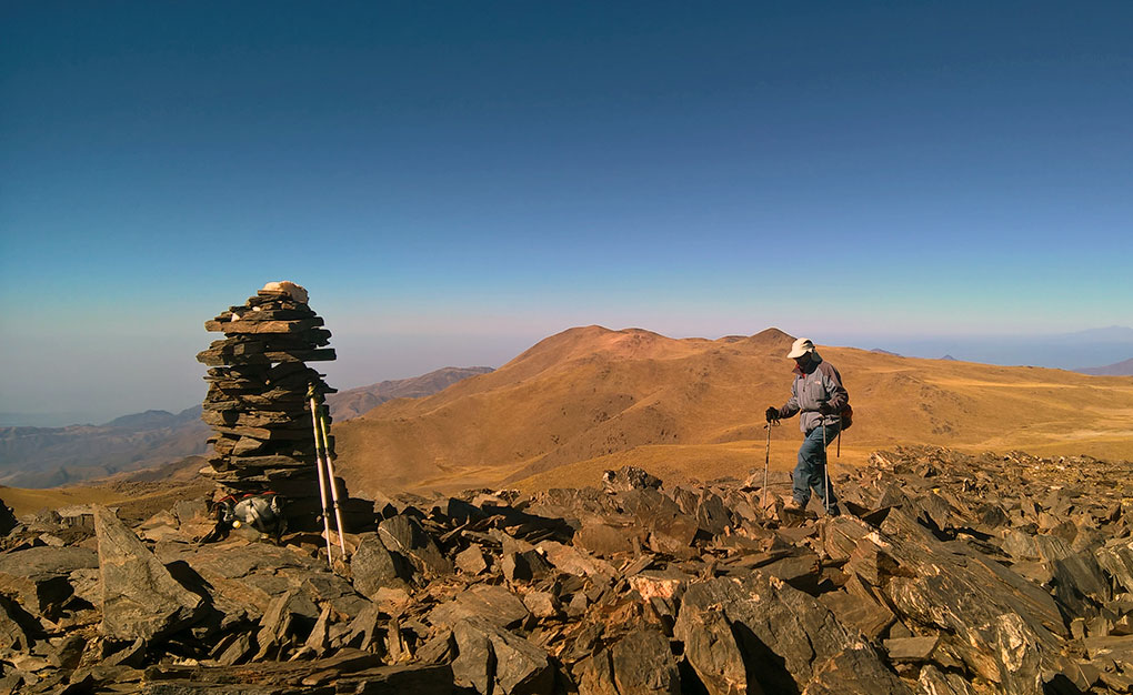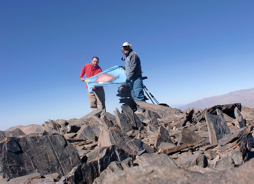 Del otro lado de una quebrada veíamos la cumbre de otra de las prominencias del filo, también con antenas en su parte superior como el Negrito y el Morado, y una huella de vehículo muy marcada para llegar. Dada la hora, ya pasado el mediodía decidimos dejarlo para mejor oportunidad. Almorzamos en la cumbre, donde estaba muy agradable, casi sin viento y cerca de las 13.30 emprendimos la vuelta. Faldeamos por la derecha del Santa Isabel y bajamos sin mayores problemas hasta el Campamento donde llegamos a eso de las tres y media de la tarde, cansados pero muy contentos.