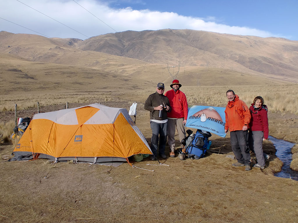 Marcelo fue el que primero viajó para San Miguel de Tucumán y se encargó de comprar las garrafas para los calentadores, tarea que no le resultó tan sencilla como se podía esperar. Al día siguiente viajamos Florencia, Jorge y yo. Nos encontramos en Tucumán, recorrimos un poco la ciudad y subimos a dormir a Tafí del Valle para empezar a aclimatar un poco, mientras esperábamos a Pato que llegaba al día siguiente. Cuando nos juntamos todos en Tafí, tomamos el Aconquija y salimos para el abra del Infiernillo a unos 3.050 metros. Un viaje corto de una media hora.