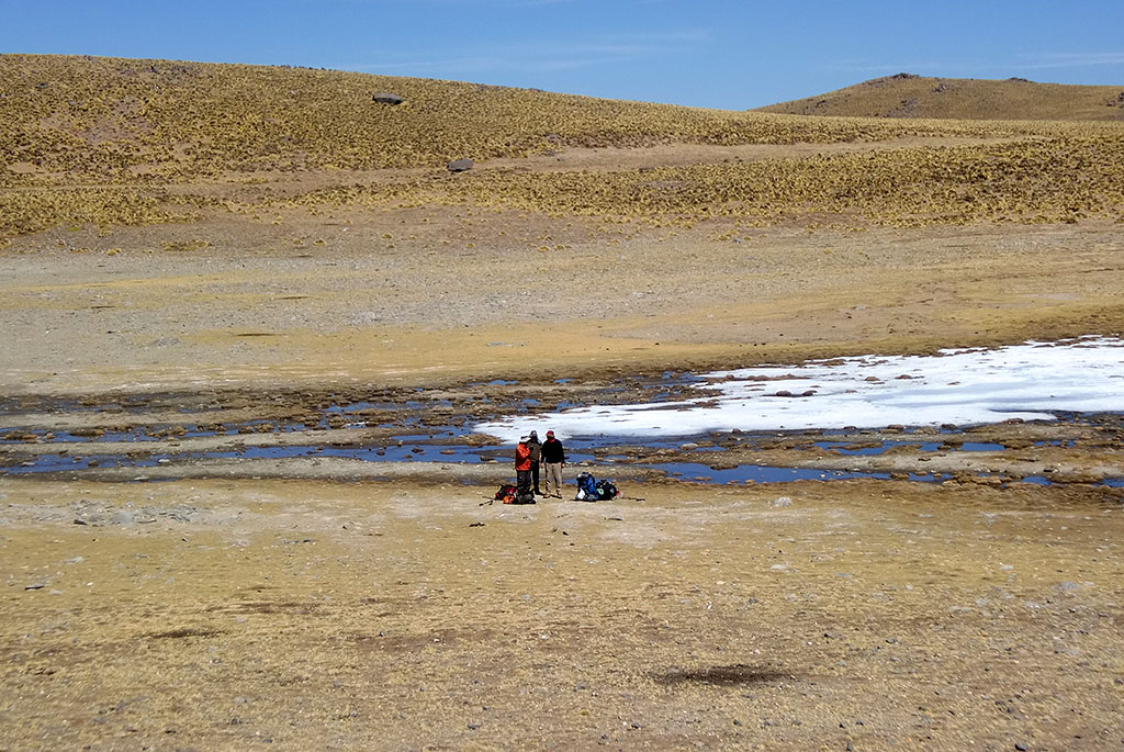 Esta altiplanicie está modelada por la glaciación, e incluye en ciertas épocas del año hasta unos veinte cuerpos de agua, desde pequeños charcos hasta lagunas de varias hectáreas, de pocos metros de profundidad. Además de arroyos, vegas y ciénagas. En nuestro caso sólo encontramos agua, poca, en la laguna de Huaca Huasi y en la vega en la que acampamos.