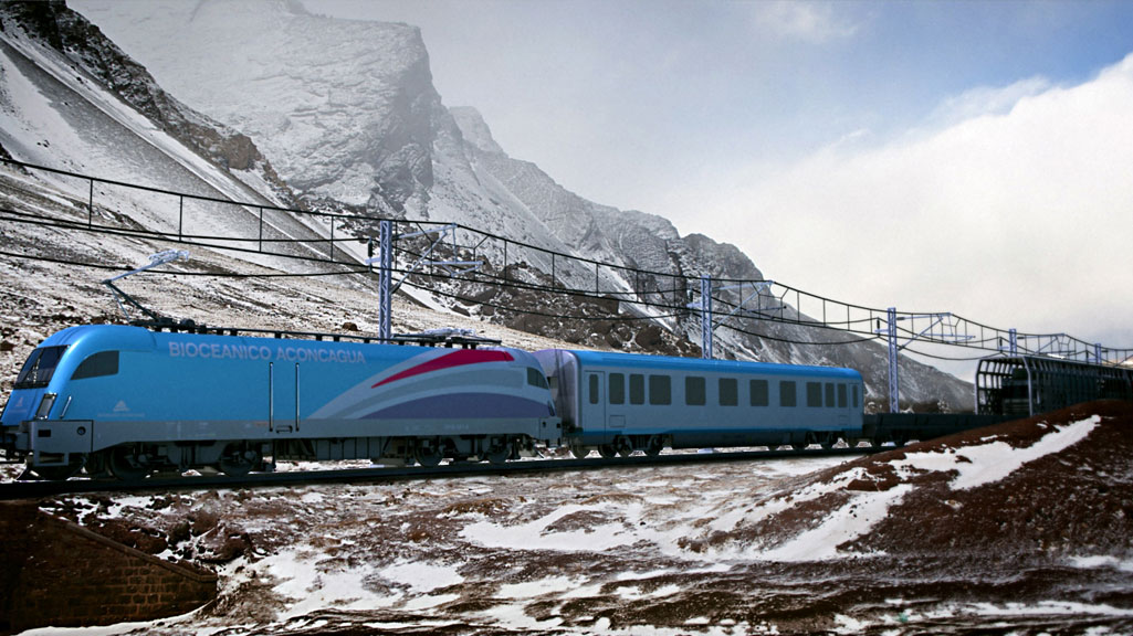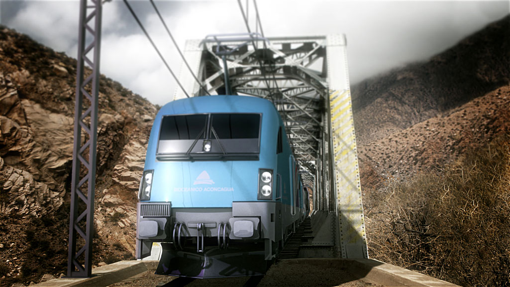 Tren del Corredor Bioceánico Aconcagua, CBA. Foto: www.bioceanicoaconcagua.com