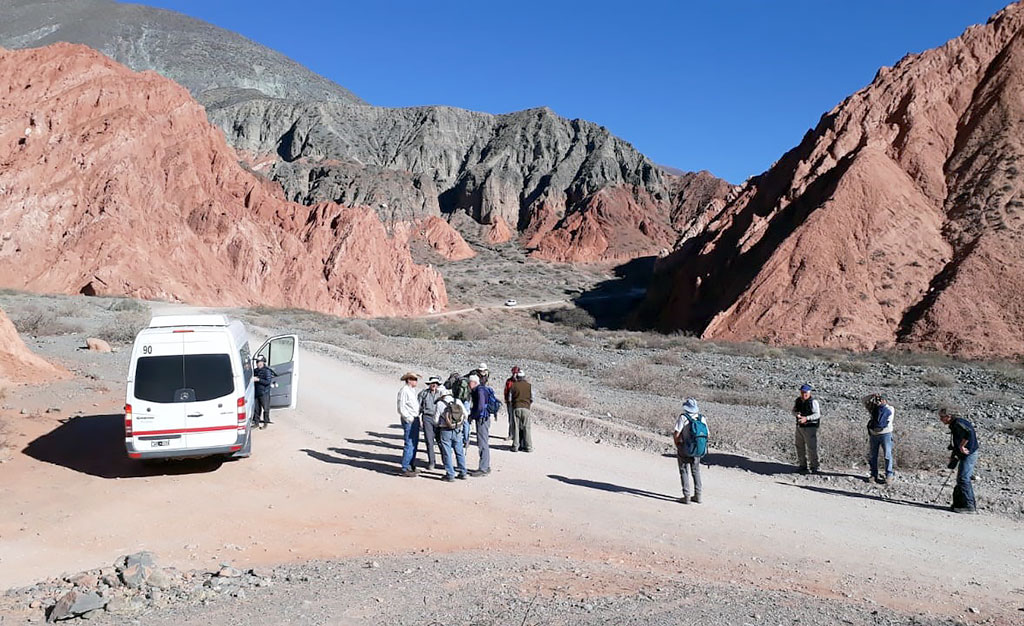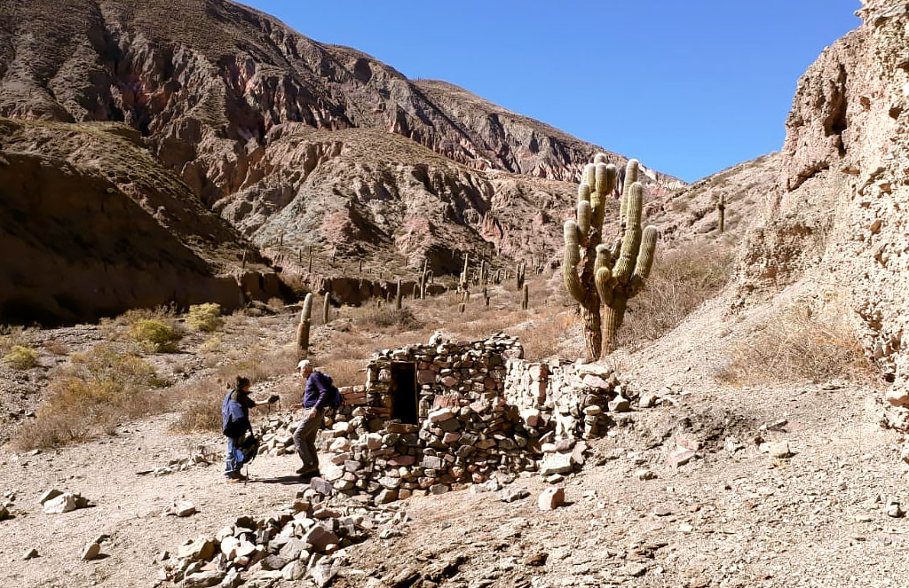 Nos fuimos a caminar de Purnamarca a Tumbaya y que hermoso!!!porque la quebrada se ilumino de sol generoso y aguardándonos en cada recodo con los colores del mineral y la sorpresa de un nuevo rincón a cada paso, hasta alcanzar el abra de los 3000 metros y del otro lado los antiguos caminos mineros para el descenso …Antes de salir a la ruta, una sorpresa más de Altamirano, nos esperaba una picada al costado de un hilo fresco de agua y a la sombra del monte…