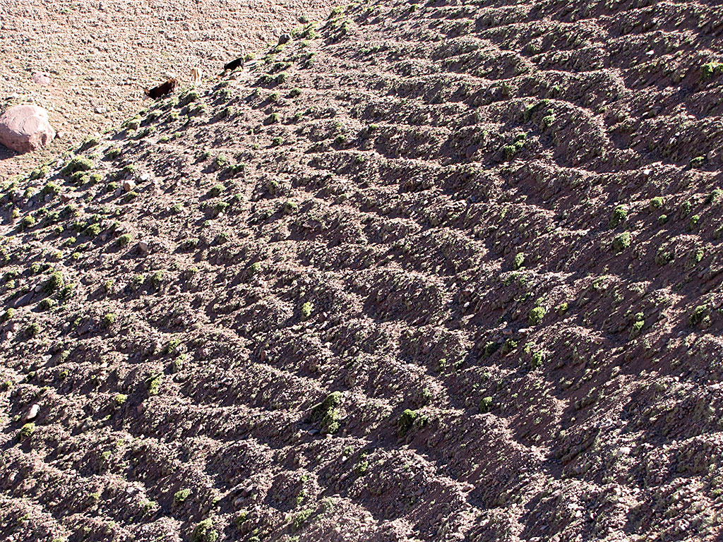 3) Presencia de Solifluxión/Gelifluxión y otros procesos criogénicos (crioclastia, selección, Criturbación, etc) que conducen a la denominada “geomorfología Periglacial”, como por ejemplo, es la formación de “suelos estructurados” en pequeña escala o a los “Glaciares de escombro” en una mesoescala.